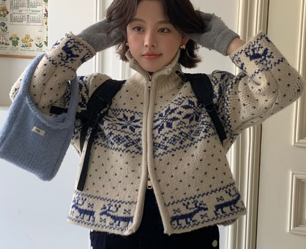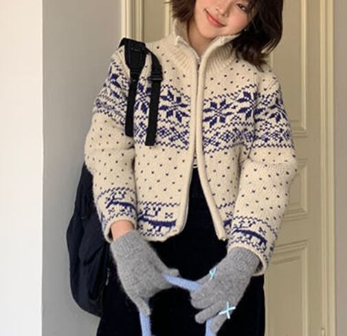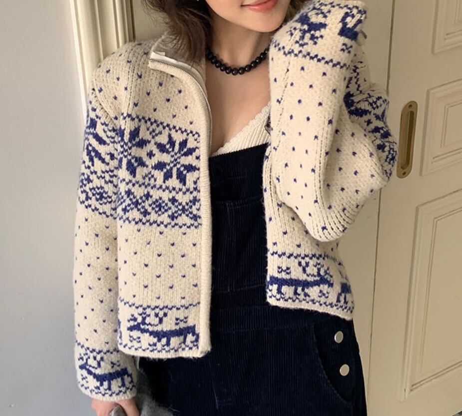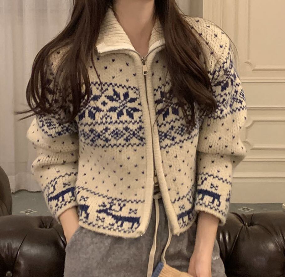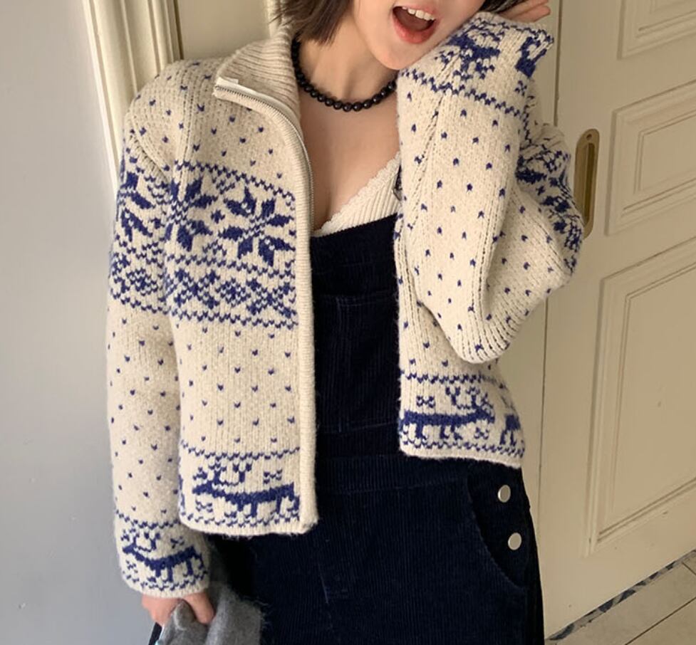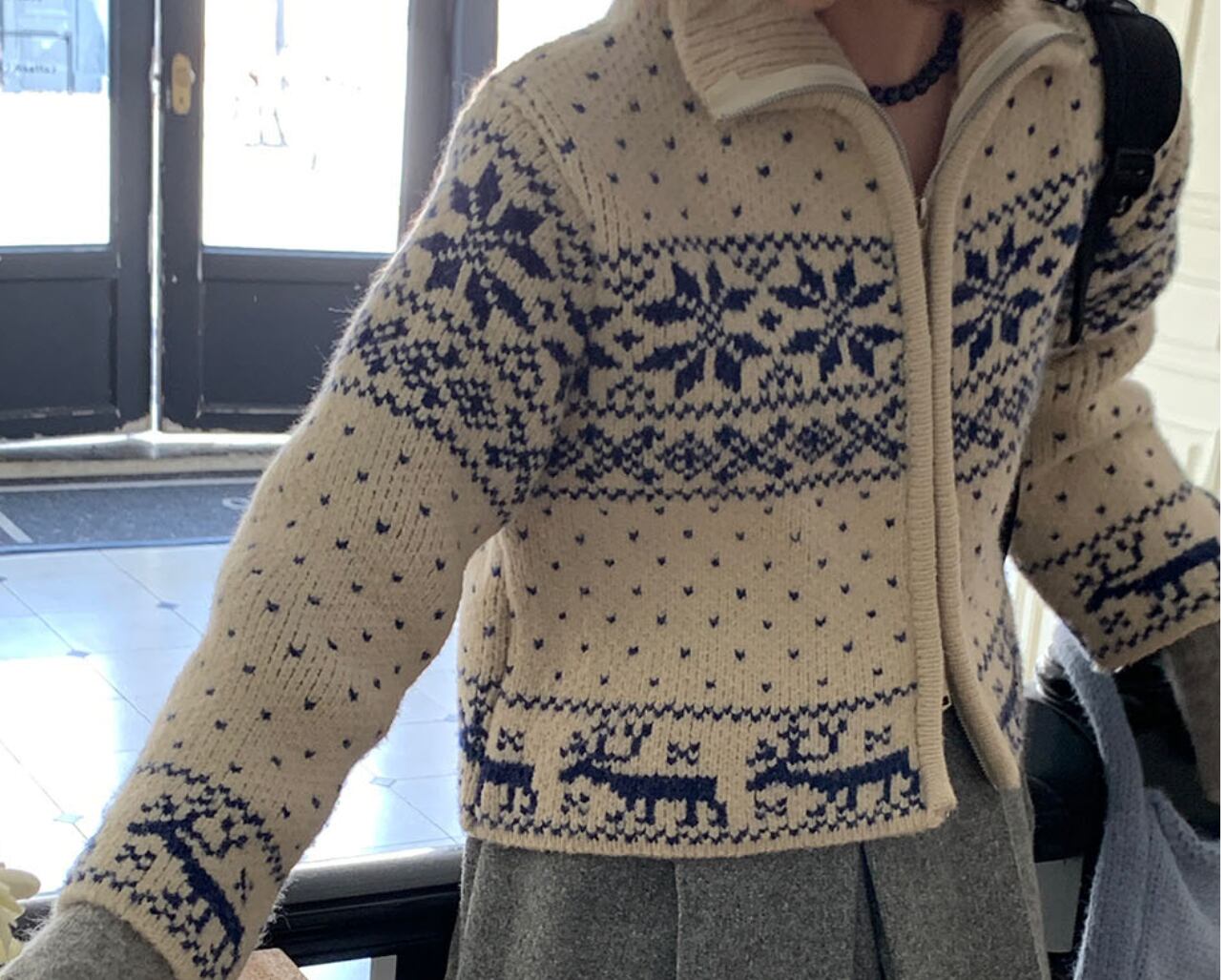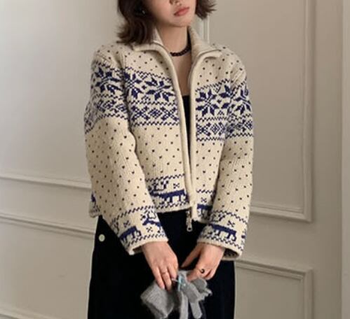 レディース トップス ジャケット ニット セーター カーディガン コート ブルゾン アウター 上着 ショート 長袖 襟付き ファスナー 前開き ケーブルニット ジッパー ダブルジッパー ニット リブニット かわいい 大人可愛い きれいめ カジュアル おしゃれ レトロ ガーリー カントリー ナチュラル ドット柄 ノルディック 冬 クリスマス 暖かい 温かい 10代 20代 30代 お出かけ 旅行 ショッピング 重ね着 韓国 コーデ 暖かい 普段使い 着回し フリーサイズ クリーム ベージュ バイカラー