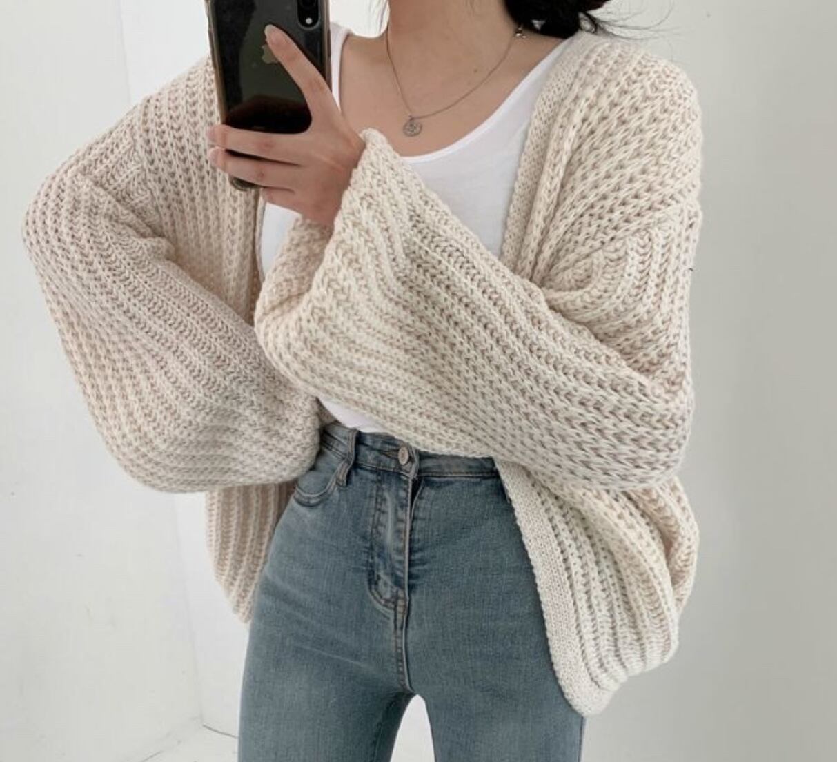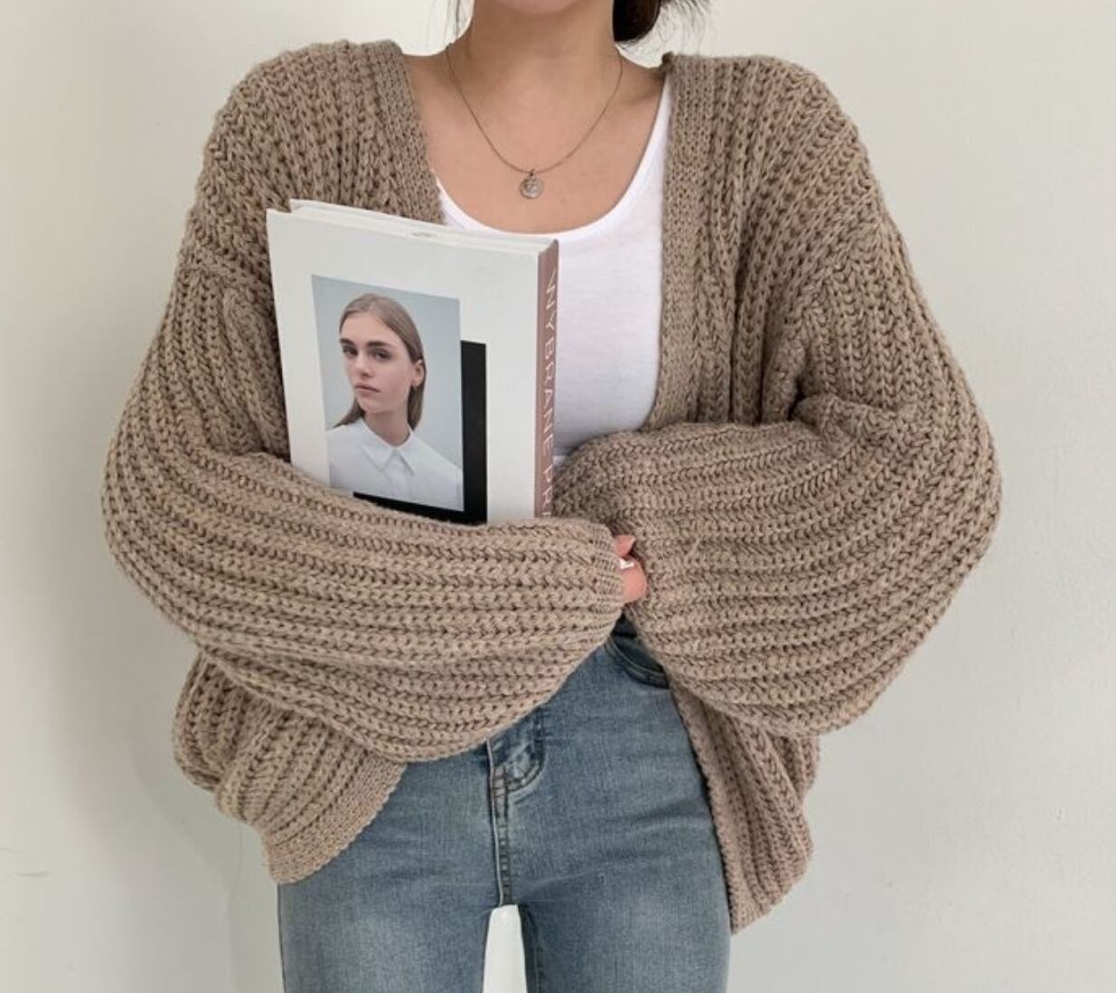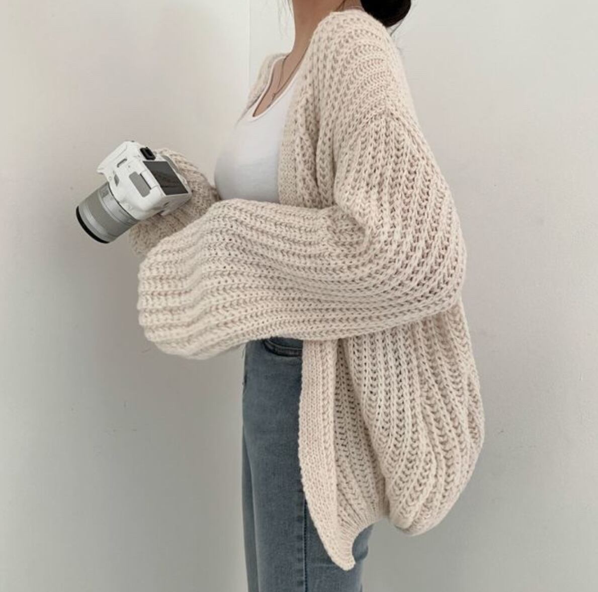 大人可愛いスタイルを楽しむ、レディース トップス ニットカーディガンです。ボリューム袖が特徴的なこのカーディガンは、ゆったりとしたシルエットで、リラックス感ある着心地を実現します。前にボタンがないシンプルなデザインがカジュアルな印象を与えます。秋冬のお出かけや普段使いにぴったりなアイテムです。