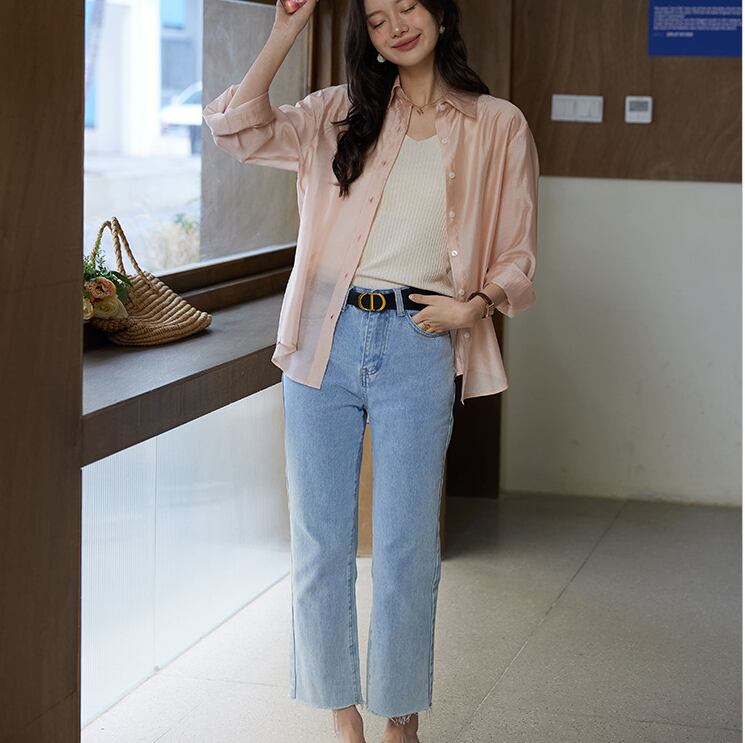 薄手で軽やかな着心地が魅力の、襟付きブラウス。