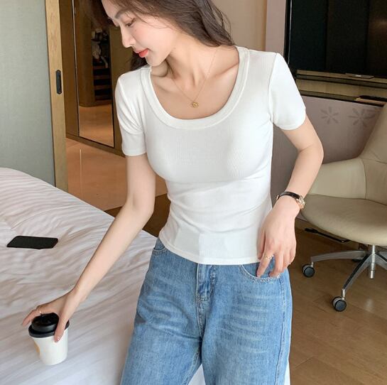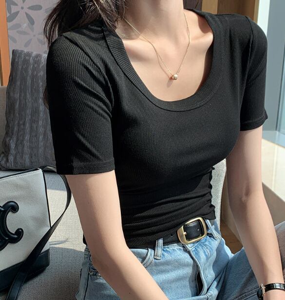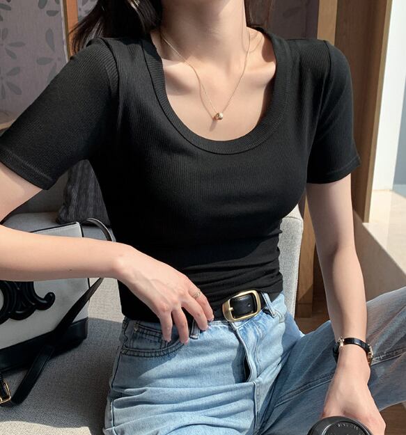 大人可愛い肌見せを楽しむための、スタイリッシュな半袖トップス。