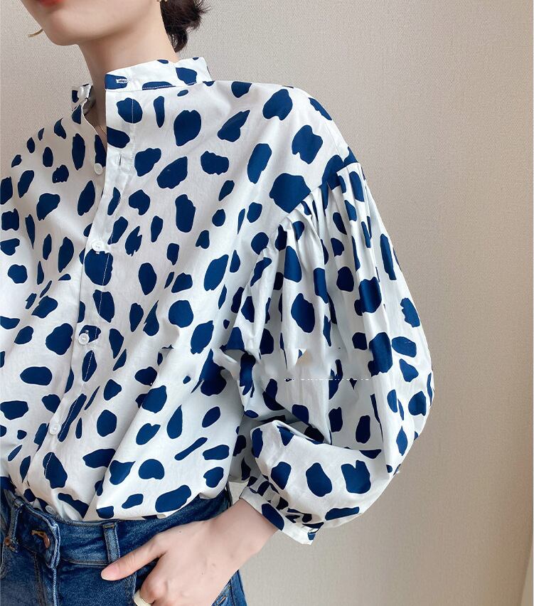 レディース トップス シャツ ブラウス カットソー 前開き 5分袖 7分袖 ボリューム袖 パフスリーブ バルーン袖 ノーカラー バルーン かわいい 大人可愛い きれいめ シンプル カジュアル 上品 おしゃれ かっこいい レトロ 個性的 存在感 都会的 クラシカル アメリカン 牛柄 ダルメシアン柄 春 夏 秋 ロングシーズン デート お出かけ 旅行 公園 女子会 休日 バカンス ショッピング お花見 カフェ コーデ 楽ちん プチプラ 普段使い 着回し インスタ映え S M L XL サイズ展開 ホワイト