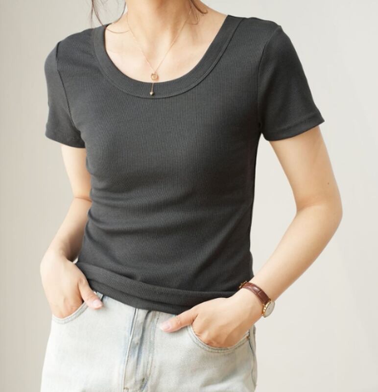 大人可愛い肌見せを楽しむための、スタイリッシュな半袖トップス。