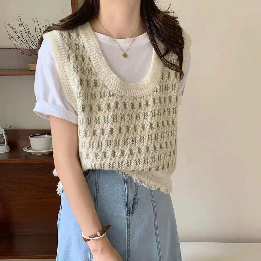 レディース トップス ニット プルオーバー ベスト 袖なし ノースリーブ Uネック ラウンドネック ストリート フリンジ かわいい 大人可愛い きれいめ シンプル 上品 おしゃれ かっこいい レトロ こなれ感 ガーリー クール エレガント 抜け感 かっちり ヴィンテージ ラブリー キュート ベーシック アクティブ ロマンティック ナチュラル 秋 冬 通勤 お出かけ レストラン 休日 重ね着 韓国 オルチャン 楽ちん 普段使い 着回し レイヤード 定番 フリーサイズ 茶色 ブラウン ブルー 緑 グリーン