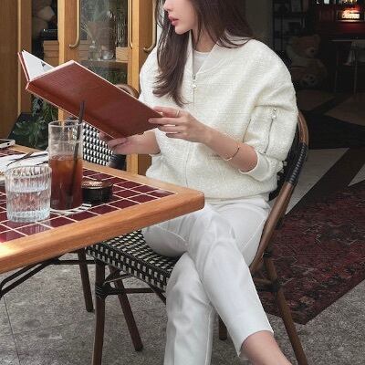 レディース ジャケット ブルゾン アウター 上着 前開き ショート 長袖 ファスナー ポケット ハイウエスト ツイード かわいい 大人可愛い きれいめ シンプル 上品 おしゃれ かっこいい レトロ こなれ感 マニッシュ ガーリー ルーズ クール ヴィンテージ ラブリー キュート 都会的 クラシカル ロマンティック ナチュラル 無地 春 秋 お出かけ 休日 ショッピング 重ね着 楽ちん 普段使い 着回し レイヤード トレンド 流行 インスタ映え フリーサイズ 白 ホワイト 黒 ブラック オフホワイト パール