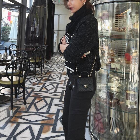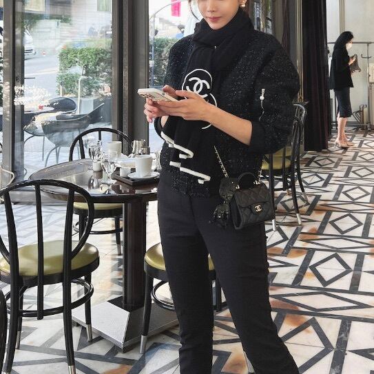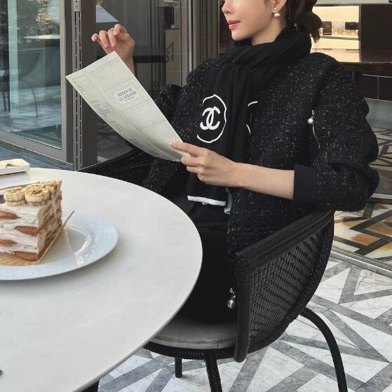 上品なツイードにパールで華やぎを添えて。