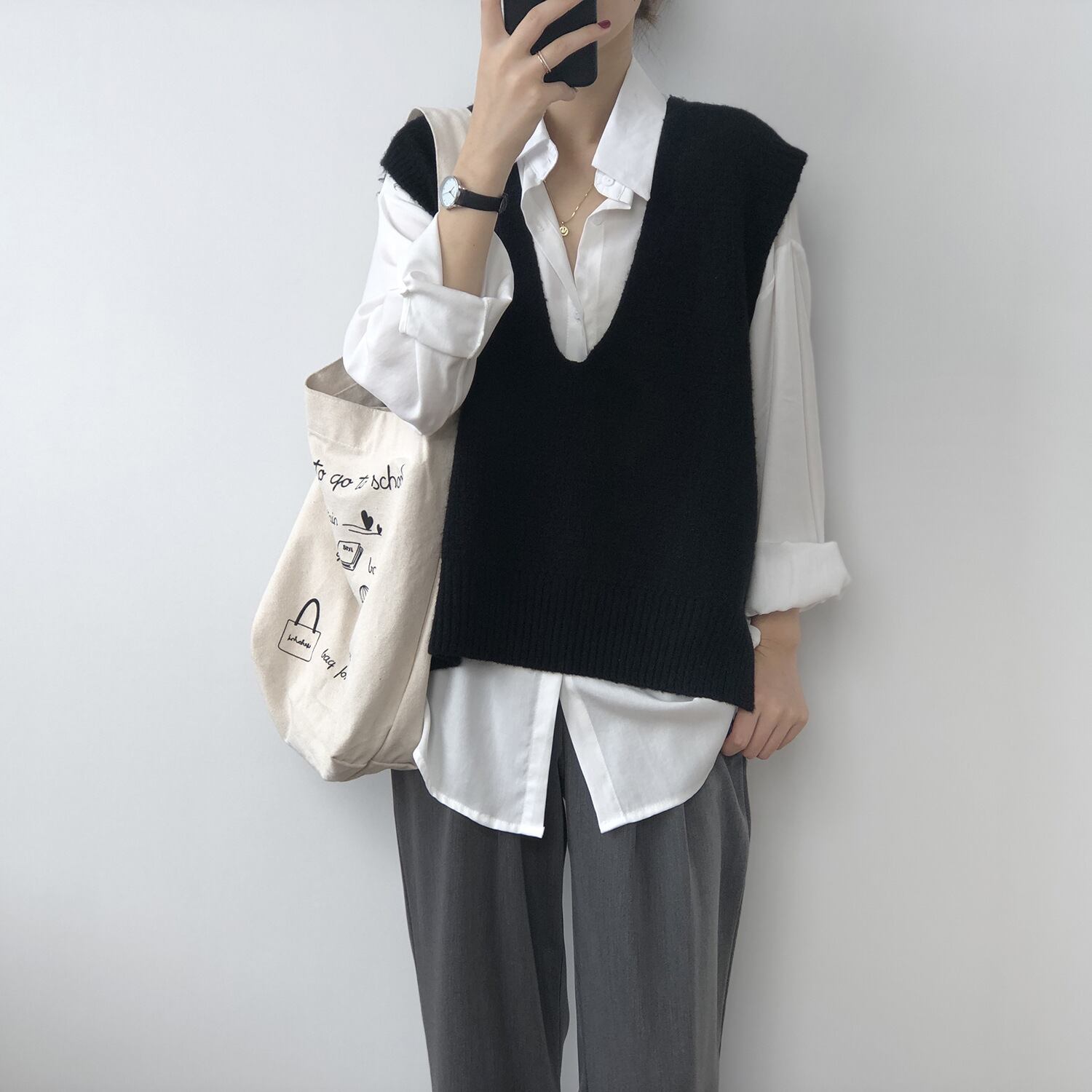 Vネック×ノースリーブで旬のバランスをメイク。