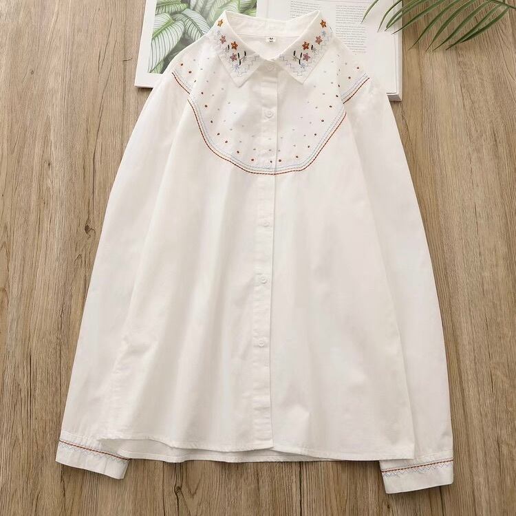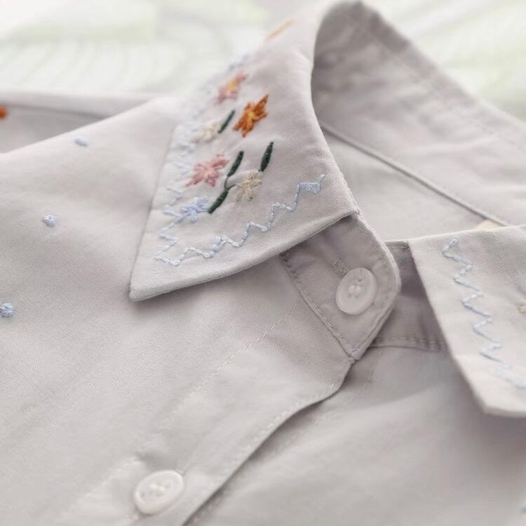 レディース トップス シャツ ブラウス 襟付き 角襟 フェミニン 刺繍 前開き ボタン かわいい 大人可愛い シンプル カジュアル 上品 おしゃれ レトロ エキゾチック こなれ感 ガーリー エレガント 抜け感 ヴィンテージ ラブリー キュート ロリータ クラシカル カントリー ロマンティック ナチュラル 花柄 フラワー 春 秋 デート お出かけ イベント 旅行 女子会 休日 お花見 重ね着 韓国 オルチャン 楽ちん 普段使い 着回し トレンド 流行 インスタ映え M L XL 白 ホワイト ライトグレー