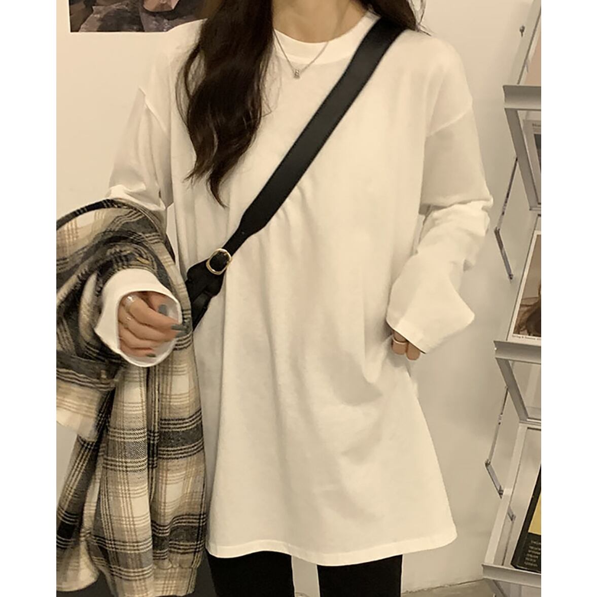 オーソドックスなシルエットで多彩なアレンジができるロングスリーブ無地Tシャツ。ドレッシーさがほどよく和らぐレディな合わせに見心地のよい親しみを生むのに有効。クラシカルな魅力と存在感をクローズアップして目新しさが生まれいつもの服が見違える