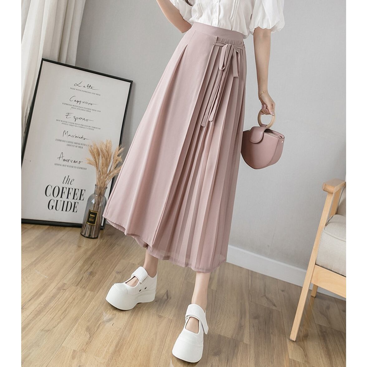 ハーフプリーツスカーチョシフォンパンツ ボトムス パンツ スカーチョ スカンツ フレアパンツ シフォンパンツ ハーフプリーツパンツ シフォン シアー プリーツ アシンメトリー リボン フレア ロング丈 無地 スカート風パンツ レディース かわいい 大人可愛い おしゃれ ガーリー エレガント 主役級 存在感 キュート きれいめ 上品 クラシカル とろみ感 抜け感 お出かけ ショッピング 休日 通勤 通学 デート 女子会 イベント 旅行 体型カバー ゆったり フェミニン