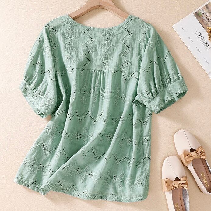 レディース トップス シャツ ブラウス プルオーバー 半袖 パフスリーブ Uネック ラウンドネック フェミニン レース 刺繍 透け感 シースルー かわいい 大人可愛い 上品 おしゃれ レトロ ガーリー ヴィンテージ ラブリー キュート クラシカル ベーシック プレッピー ロマンティック ナチュラル 花柄 フラワー 春 夏 イベント リゾート 旅行 休日 バカンス 普段使い 着回し トレンド 流行 インスタ映え M L XL 2XL 大きいサイズ ビッグ ゆったり ゆる 白 ホワイト オレンジ 緑 グリーン