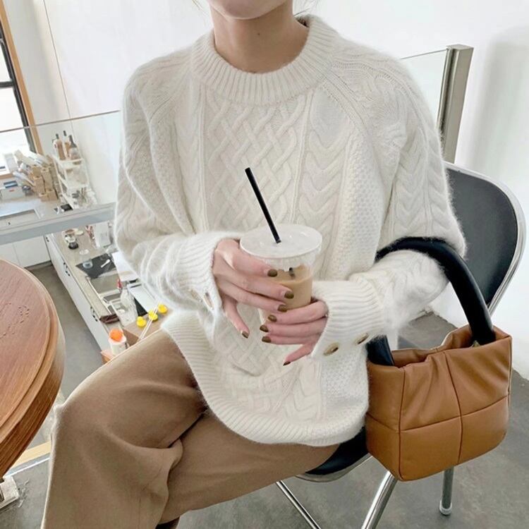 レディース トップス ニット セーター プルオーバー 長袖 ラウンドネック 襟なし もこもこ ボタン かわいい 大人可愛い シンプル カジュアル おしゃれ こなれ感 ラフ ナチュラル 無地 秋 冬 ママ 10代 20代 30代 40代 女性用 オフィス ビジネス 通勤 学生 学校 通学 デート お出かけ レストラン 公園 女子会 ショッピング カフェ モノトーン 楽ちん 暖かい 普段使い 着回し モテ 清楚 定番 S M L XL 白 ホワイト グレー ライトグレー オフホワイト ベージュ キャメル