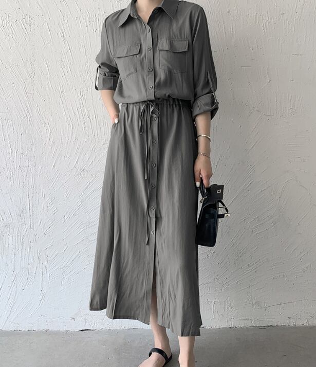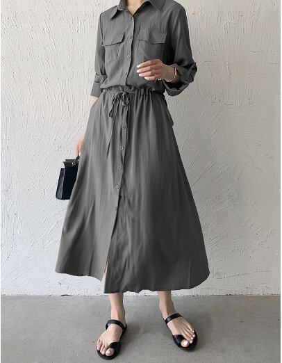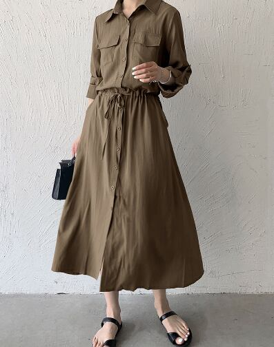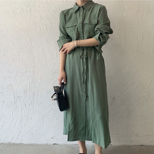 レディース ワンピース シャツワンピース ロング 長袖 襟付き ワイド Aライン フェミニン きれいめ シンプル カジュアル 上品 おしゃれ こなれ感 ラフ クール エレガント モダン 主役級 存在感 都会的 ベーシック ナチュラル 無地 秋 デート お出かけ 女子会 ショッピング カフェ コーデ 楽ちん 体型カバー 普段使い 着回し モテ 清楚 トレンド 流行 インスタ映え 定番 S M L XL 2XL ブラック ブラウン ダークグレー カーキ アプリコット ネイビー 大人カラー アーミーグリーン