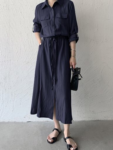 襟付き&ロング丈で、きれいめにもカジュアルにも着回せる万能デザイン。