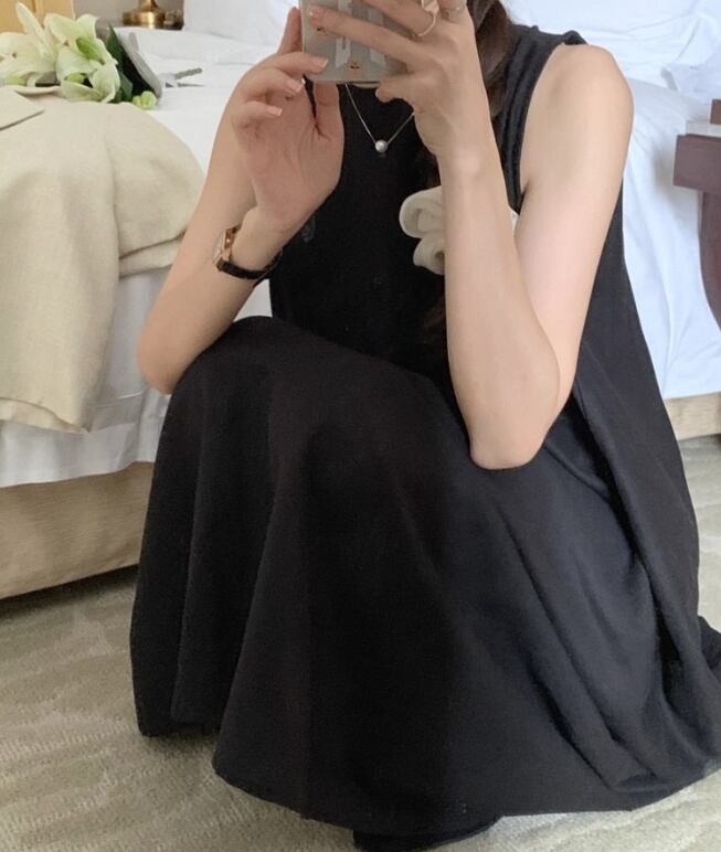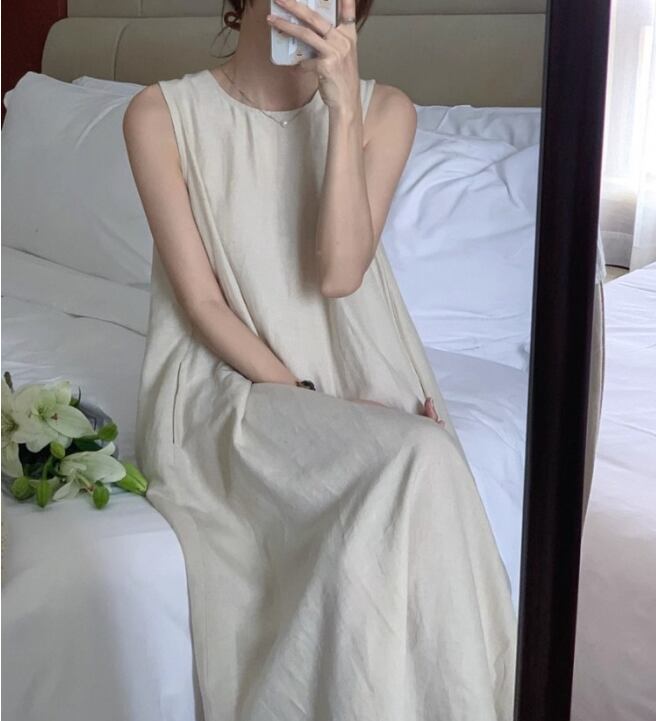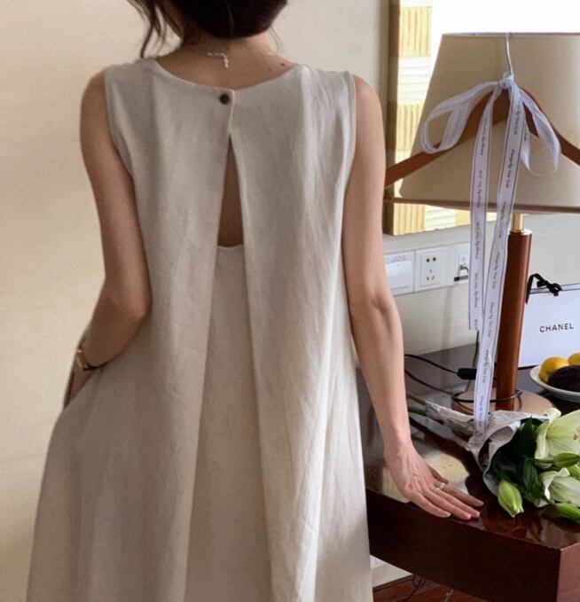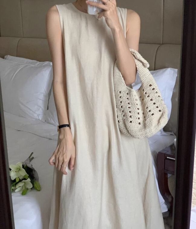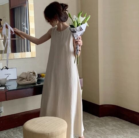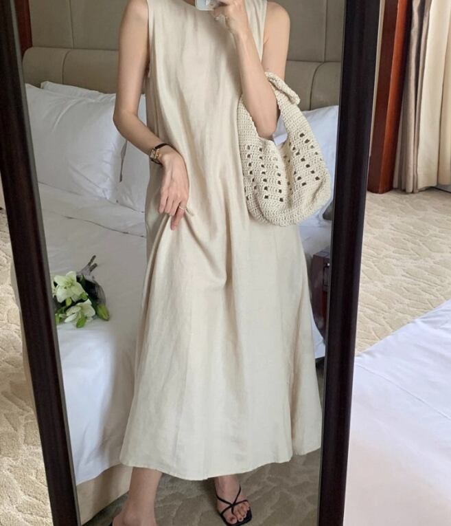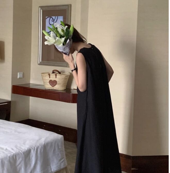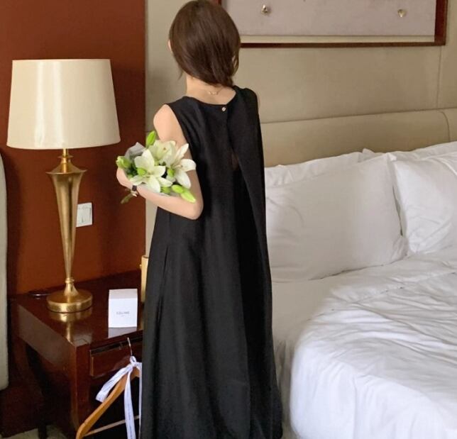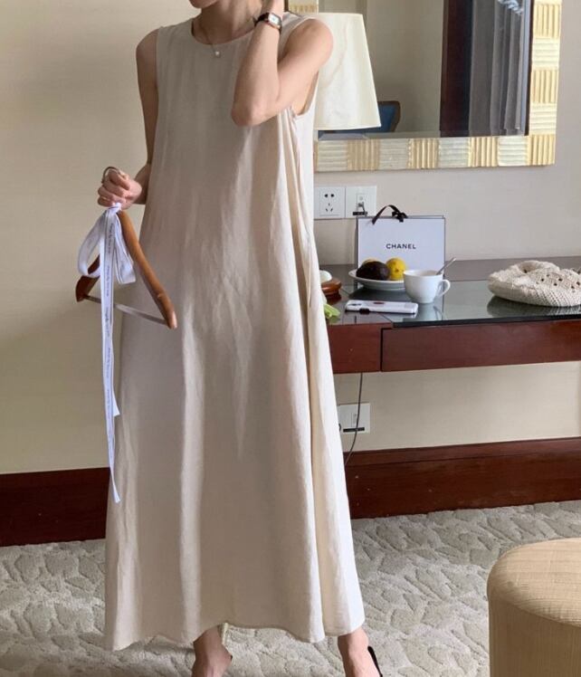 レディース ワンピース ロング 袖なし ノースリーブ ラウンドネック 襟なし ワイド フェミニン 背中開き きれいめ シンプル カジュアル 上品 おしゃれ こなれ感 ラフ 個性的 エレガント モダン 主役級 存在感 都会的 ベーシック ナチュラル 無地 夏 デート お出かけ 女子会 ショッピング カフェ コーデ 楽ちん 体型カバー 普段使い 着回し モテ 清楚 トレンド 流行 インスタ映え 定番 S M L XL ゆったり ブラック アプリコット ベーシックカラー 大人カラー カラバリ 定番カラー