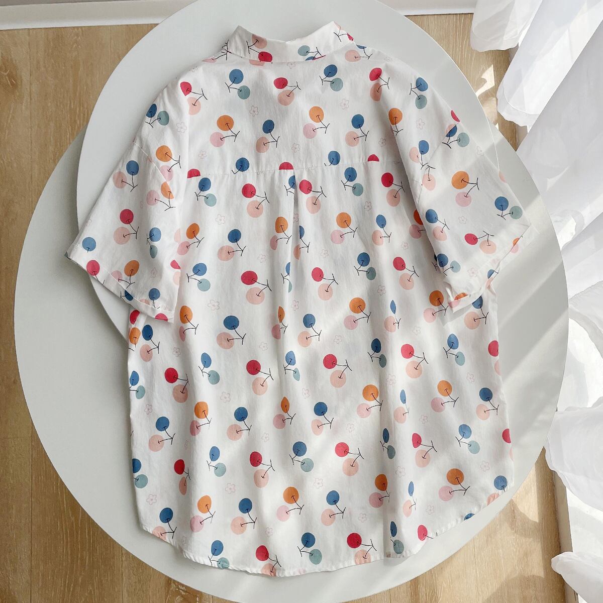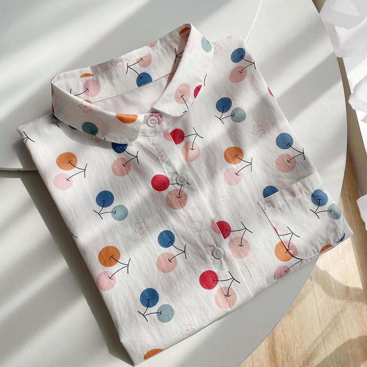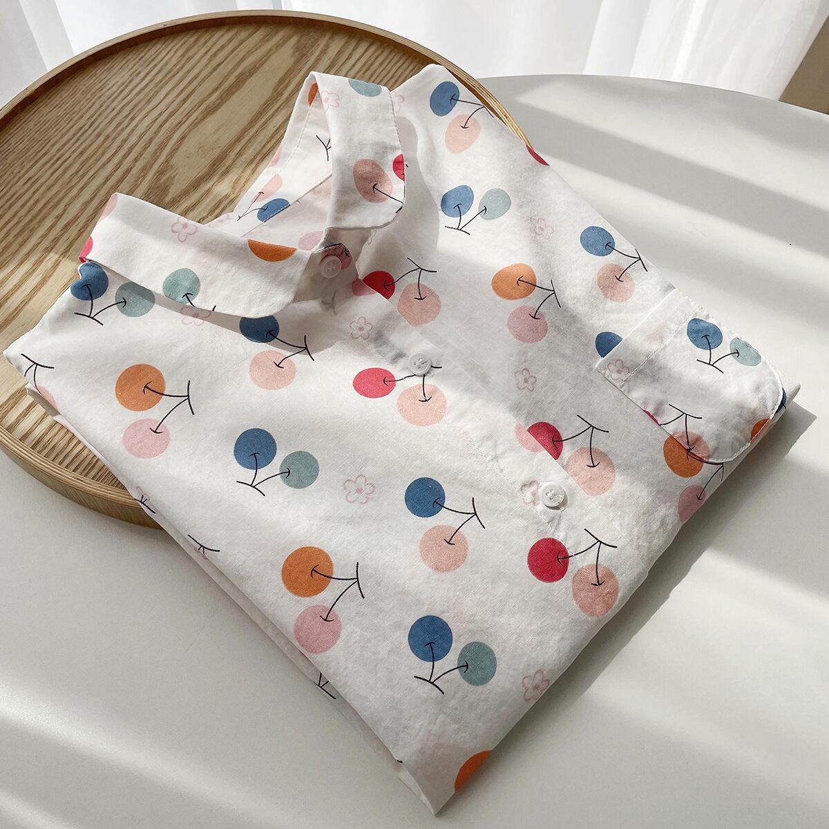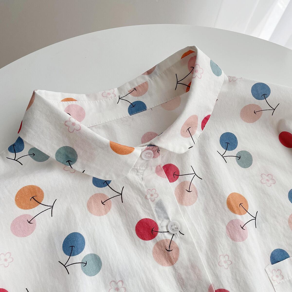 丸襟×さくらんぼ柄でとびきりキュートな印象に。