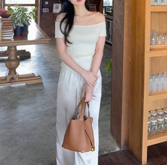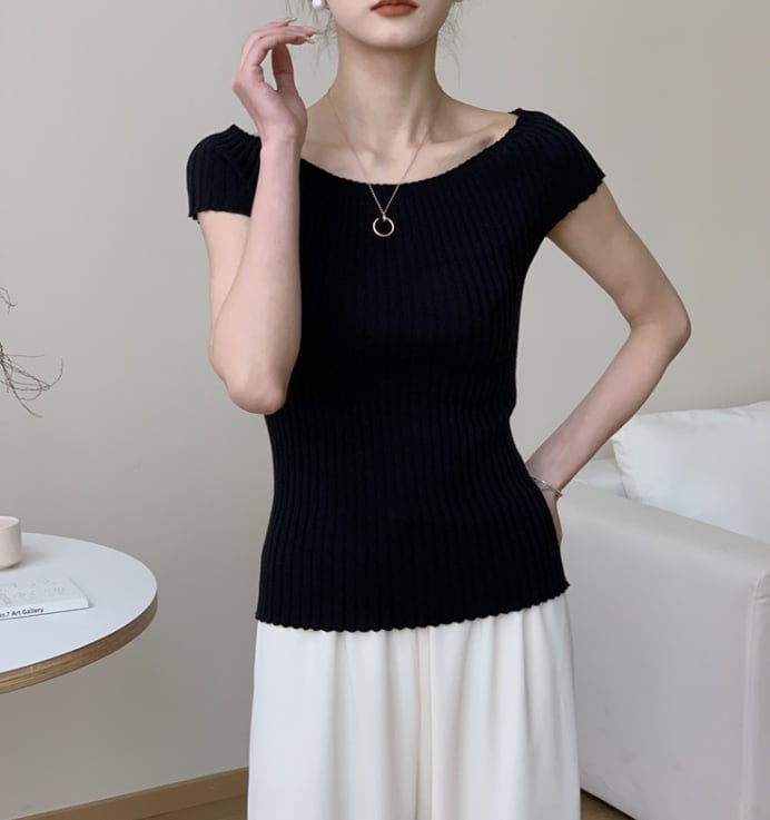 女性らしさ引き立つ、オフショルダー×タイトシルエットの半袖カットソー。