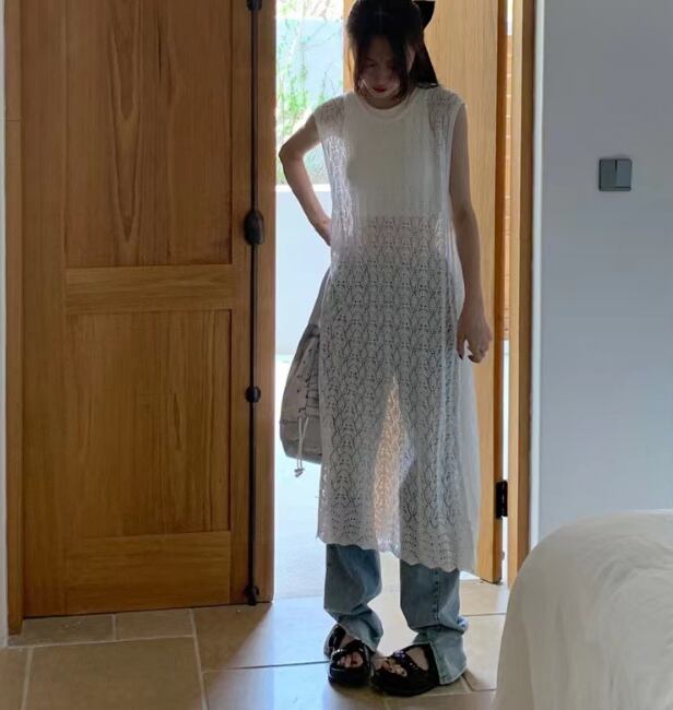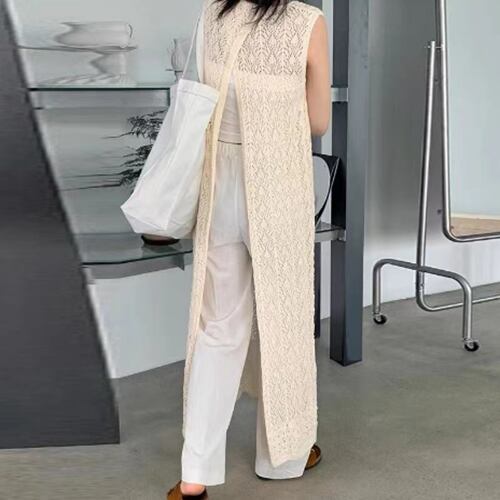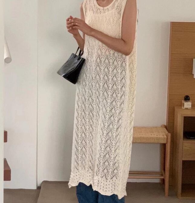 レディース トップス ロングベスト ロング 袖なし ノースリーブ クルーネック 襟なし 背中開き フェミニン 大人可愛い シンプル カジュアル 上品 おしゃれ こなれ感 ラフ エレガント 主役級 存在感 都会的 ベーシック ナチュラル 無地 春 夏 ロングシーズン デート お出かけ 女子会 ショッピング カフェ 重ね着 体型カバー 普段使い 着回し モテ 清楚 トレンド 流行 インスタ映え ゆったり ワンサイズ ホワイト ブラック カーキ アプリコット ベーシックカラー 大人カラー カラバリ 定番カラー
