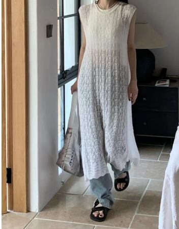ノースリーブ&クルーネックで、重ね着コーデに抜群の着回し力を発揮。
