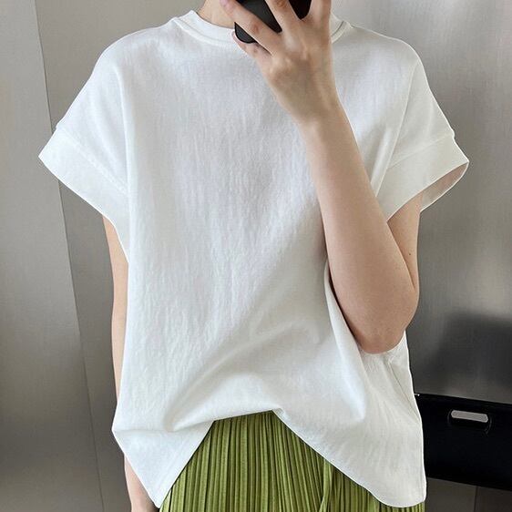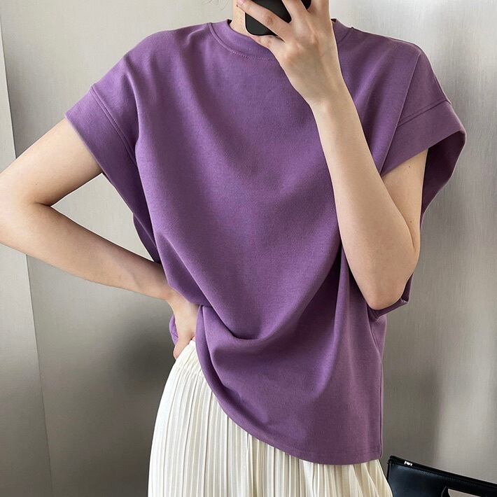 レディース トップス カットソー Tシャツ 半袖 Uネック ラウンドネック オーバーサイズ フェミニン ストリート かわいい 大人可愛い きれいめ シンプル カジュアル おしゃれ こなれ感 ラフ メンズライク マニッシュ ボーイッシュ スポーティー ルーズ カレッジ風 学生風 ベーシック アメリカン ナチュラル 無地 夏 お出かけ アウトドア キャンプ リゾート ビーチ 休日 バカンス 重ね着 韓国 オルチャン 普段使い 着回し レイヤード 流行 定番 M L 白 ホワイト 黒 ブラック 紫 パープル