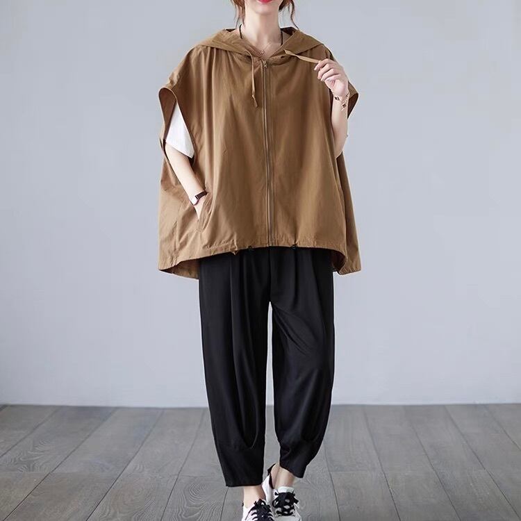 レディース ジャケット パーカー 袖なし ノースリーブ フード ストリート ファスナー ポケット 前開き かわいい 大人可愛い きれいめ シンプル カジュアル おしゃれ かっこいい こなれ感 ラフ メンズライク マニッシュ ボーイッシュ スポーティー ルーズ 抜け感 ベーシック 無地 春 秋 学生 お出かけ アウトドア キャンプ 旅行 公園 休日 重ね着 韓国 オルチャン 楽ちん 普段使い 着回し レイヤード 流行 定番 L XL 大きいサイズ ビッグ ゆったり ゆる 黒 ブラック 茶色 ブラウン グレー