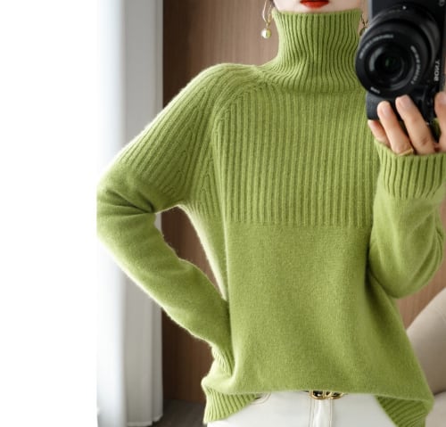 ふわふわ感が魅力のタートルネックニットで、秋冬コーデを上品に格上げ。
