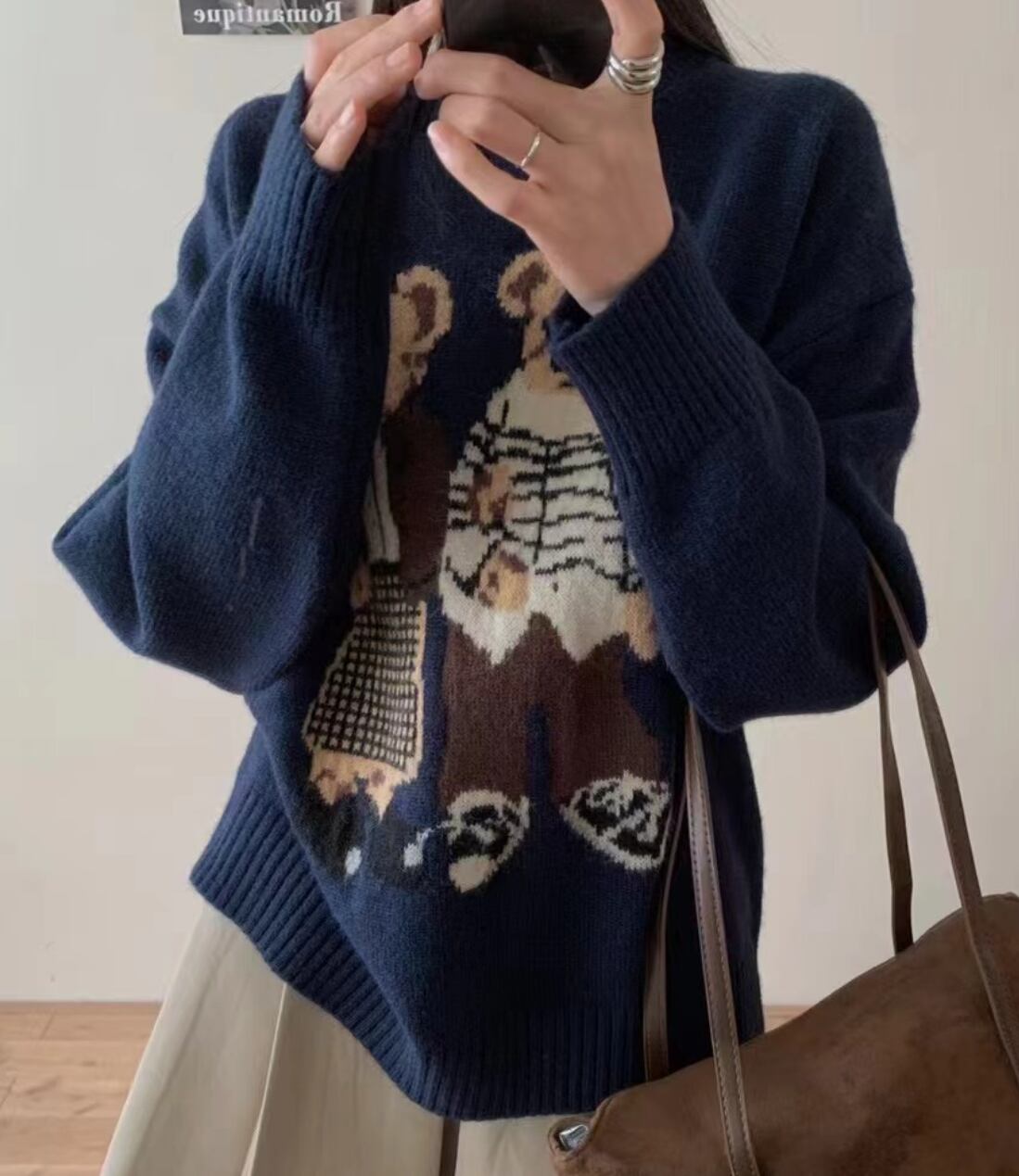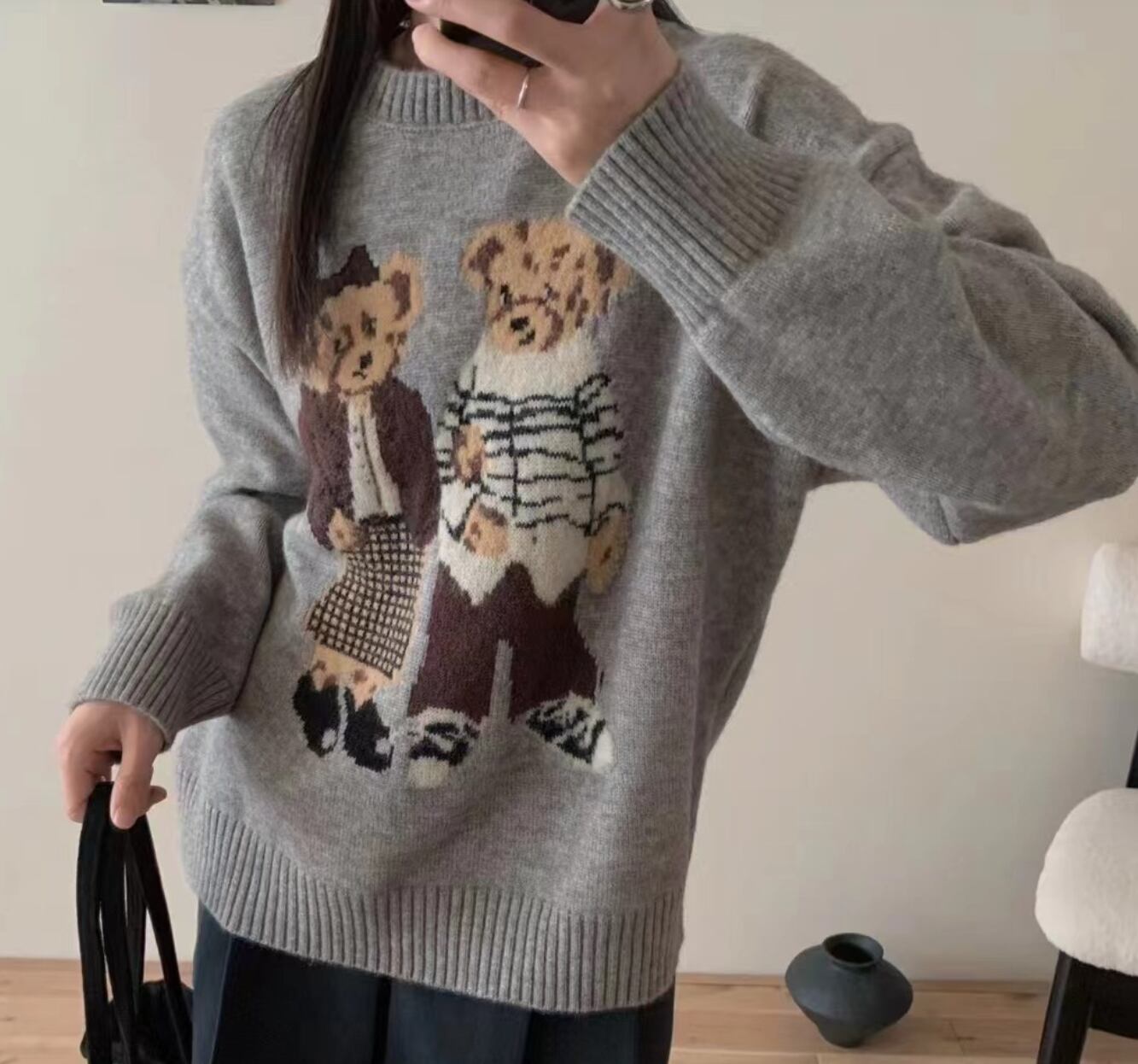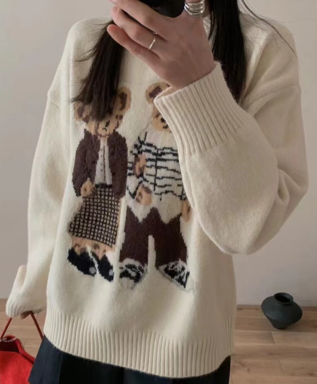 レディース トップス ニット セーター プルオーバー 上着 普通丈 長袖 萌袖 ラウンドネック ストレート ふっくら リブ ニット かわいい 大人可愛い カジュアル レトロ ガーリー ラブリー キュート アメリカン くま柄 アニマル柄 キャラクター 秋 冬 クリスマス バレンタイン 暖かい 10代 20代 学生 デート お出かけ アウトドア パーティー イベント コーデ 楽ちん 暖かい 防寒 体型カバー 普段使い ゆったり ワンサイズ ホワイト ブラック グレー オレンジ レッド ネイビー カラバリ