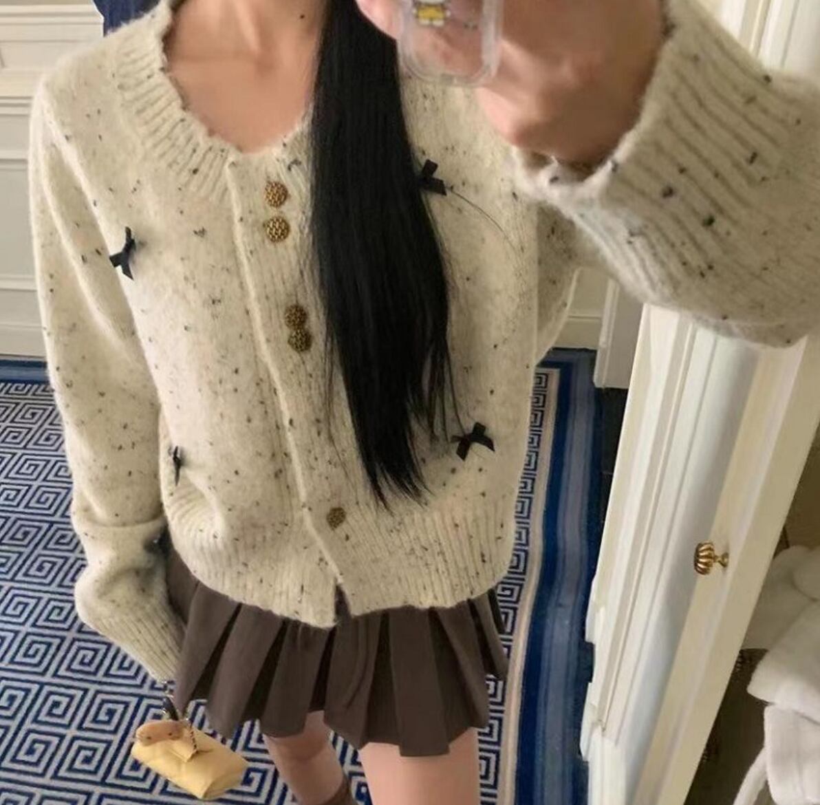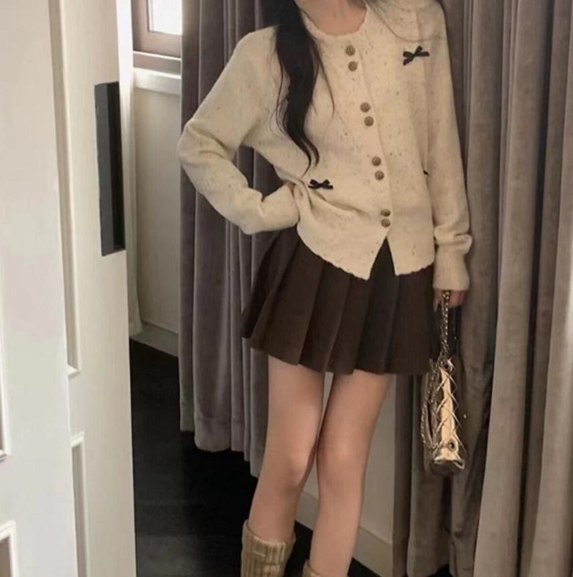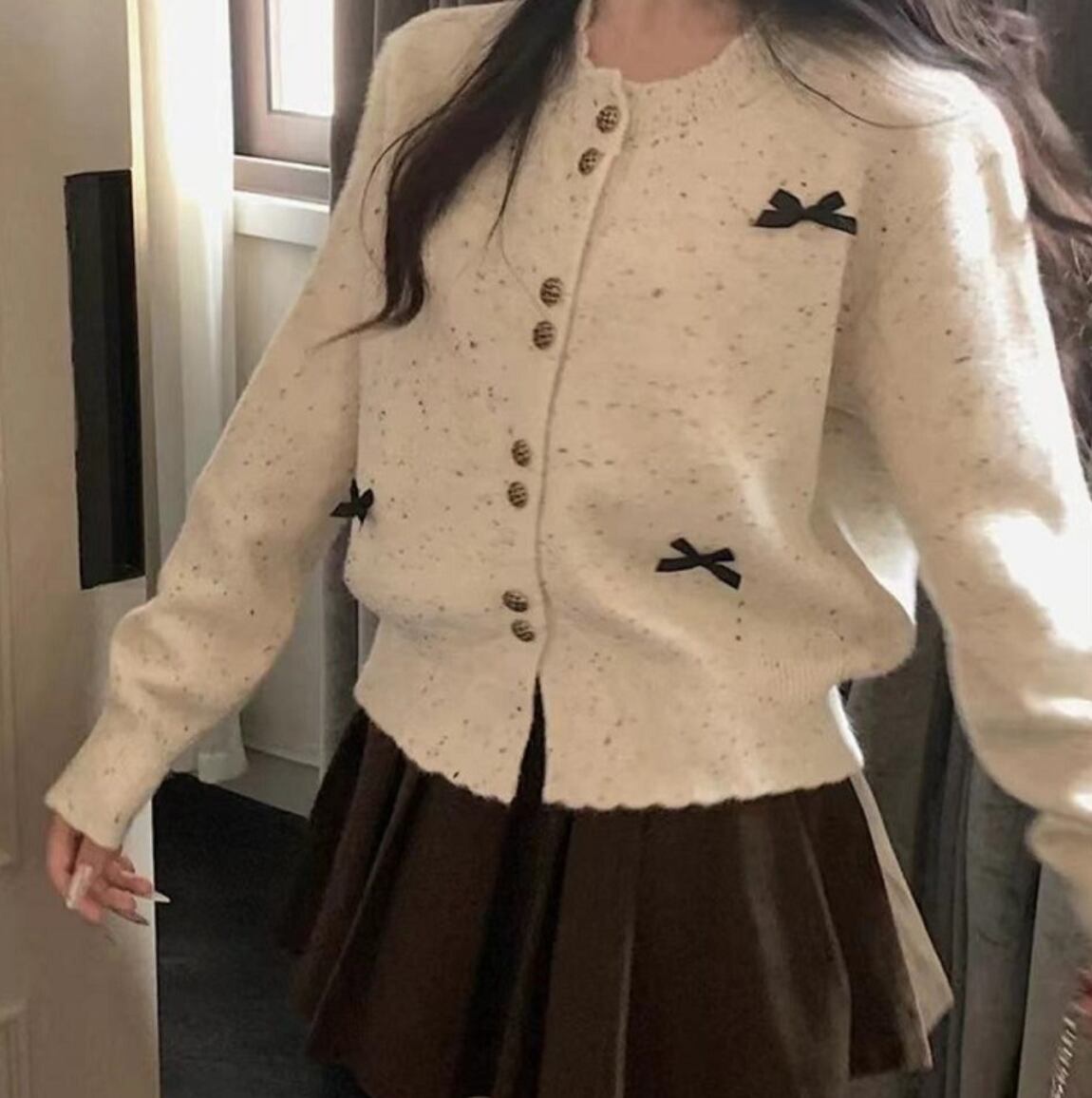 レディース トップス ニット カーディガン アウター 上着 ショート 普通丈 ショート丈 長袖 萌袖 ラウンドネック 襟なし ノーカラー タイト スリム 細身 ストレート フェミニン リボン リブ ボタン ニット かわいい 大人可愛い カジュアル おしゃれ ガーリー ラブリー キュート 秋 冬 クリスマス バレンタイン 暖かい 10代 20代 通勤 学生 お出かけ パーティー イベント 女子会 休日 韓国 オルチャン コーデ 楽ちん 普段使い 着回し インスタ映え ワンサイズ 小さめ 白 ホワイト
