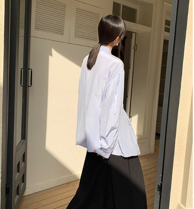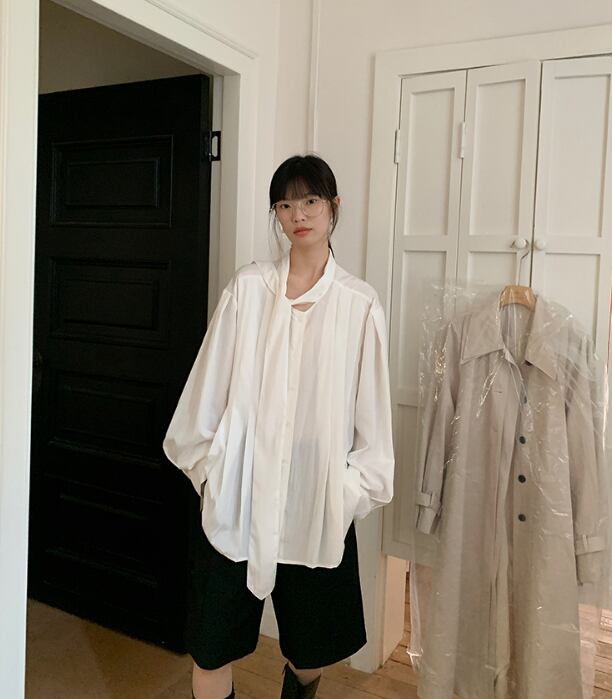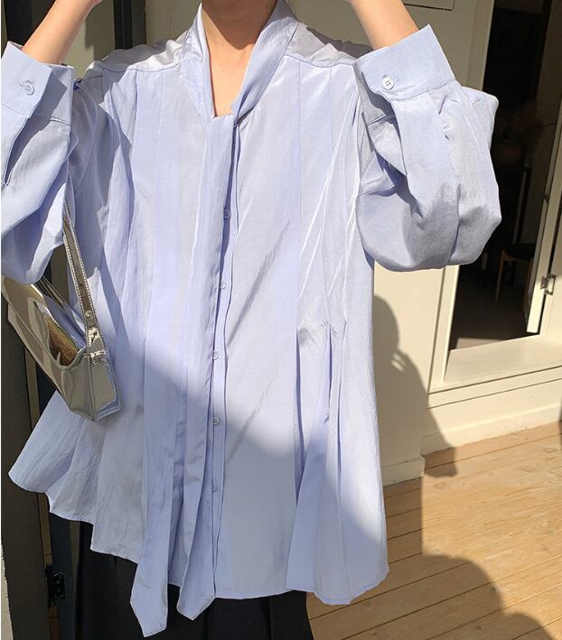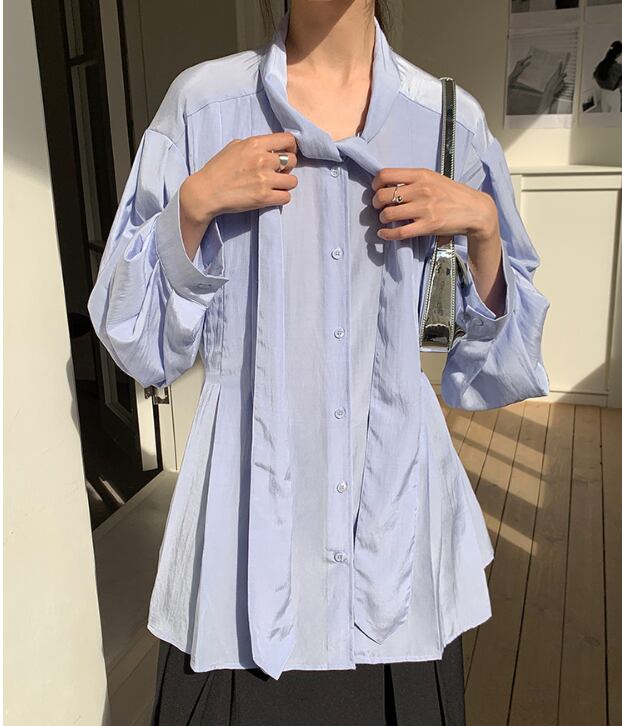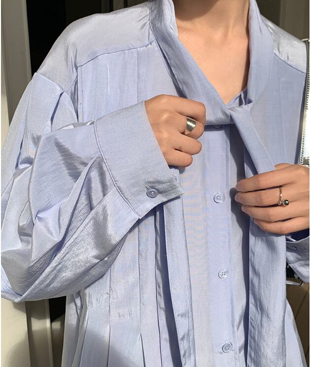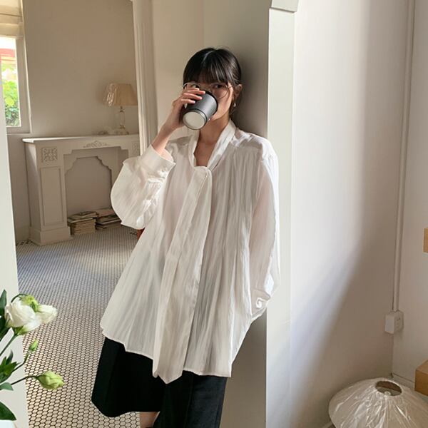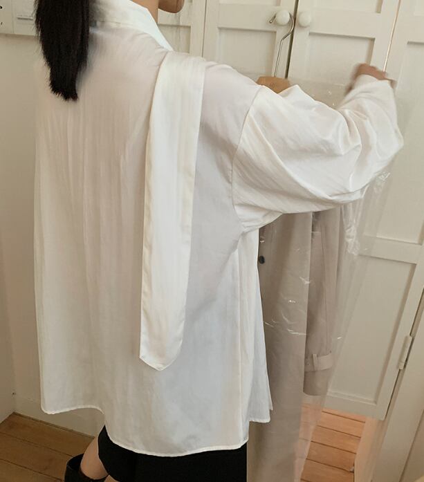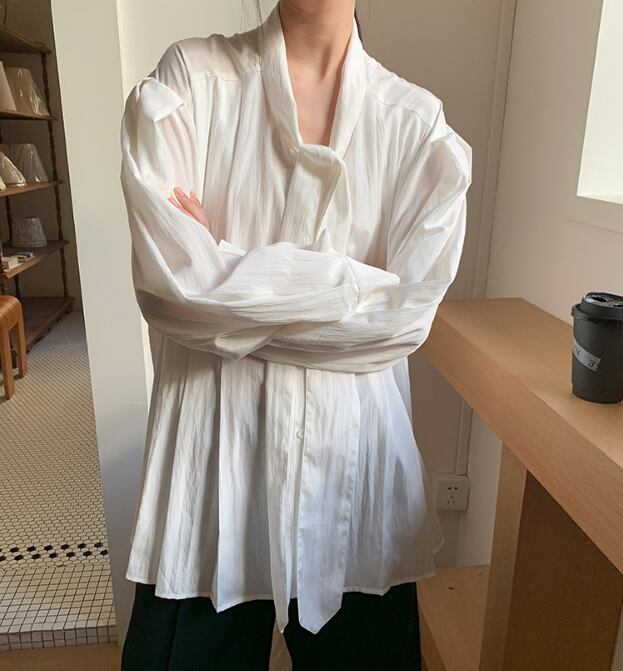レディース トップス シャツ ブラウス 前開き 丈長 長袖 ラウンドネック 襟なし ボウタイ ワイド ボタン 高見え 薄手 きれいめ シンプル カジュアル 上品 おしゃれ こなれ感 ラフ 個性的 クール モード系 主役級 存在感 都会的 ベーシック ナチュラル 無地 春 デート お出かけ 女子会 休日 ショッピング カフェ コーデ 楽ちん 体型カバー 普段使い 着回し モテ 清楚 トレンド 流行 インスタ映え 定番 ゆったり ワンサイズ ホワイト ブルー ベーシックカラー 大人カラー カラバリ