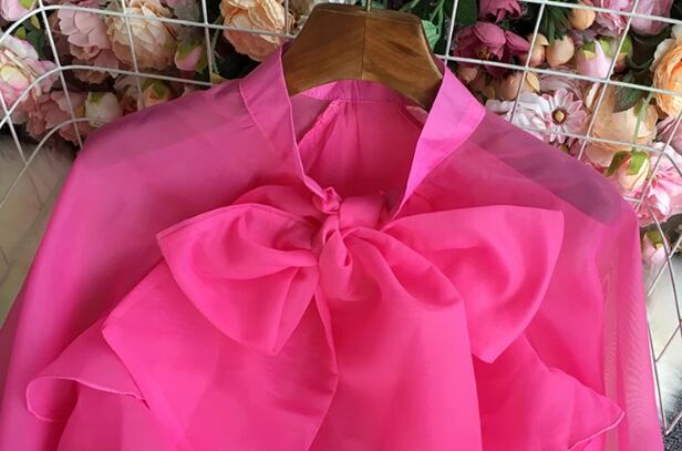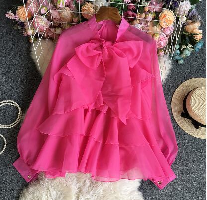 ふんわりフリルと首元のリボンがアクセントのフェミニンブラウス。