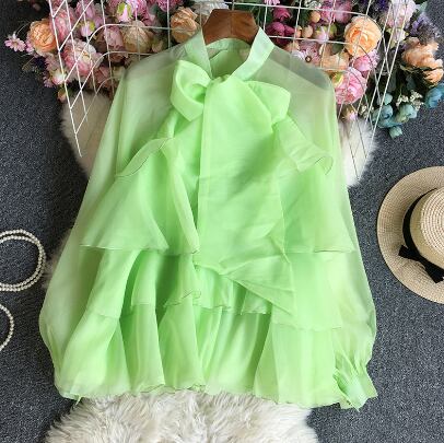 レディース トップス シャツ ブラウス 普通丈 長袖 ラウンドネック 襟なし ワイド フレア フェミニン フリル リボン 薄手 かわいい シンプル カジュアル おしゃれ こなれ感 ラフ 個性的 主役級 存在感 ラブリー キュート 都会的 ベーシック ナチュラル 無地 春 夏 ロングシーズン デート お出かけ パーティー イベント カフェ モテ 清楚 トレンド 流行 インスタ映え 定番 ワンサイズ ホワイト ブラック ピンク ブルー グリーン ベーシックカラー 大人カラー カラバリ ライトピンク
