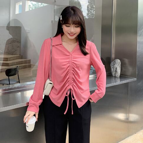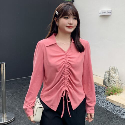 レディース トップス カットソー プルオーバー 普通丈 長袖 Vネック 襟付き ワイド フェミニン 大人可愛い きれいめ シンプル カジュアル おしゃれ こなれ感 ラフ 個性的 主役級 存在感 都会的 ベーシック ナチュラル 無地 春 秋 デート お出かけ 女子会 休日 ショッピング カフェ 普段使い 着回し モテ 清楚 トレンド 流行 インスタ映え 定番 XL 2XL 3XL 4XL 大きいサイズ ゆったり サイズ展開 ブラック ピンク アプリコット ベーシックカラー 大人カラー カラバリ