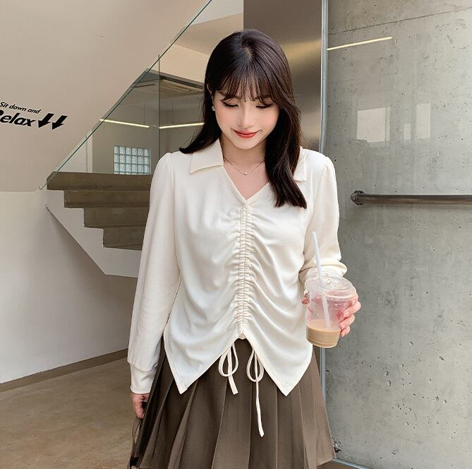 フェミニンな雰囲気漂うVネック襟付きカットソーは、大人可愛いスタイルにぴったり。
