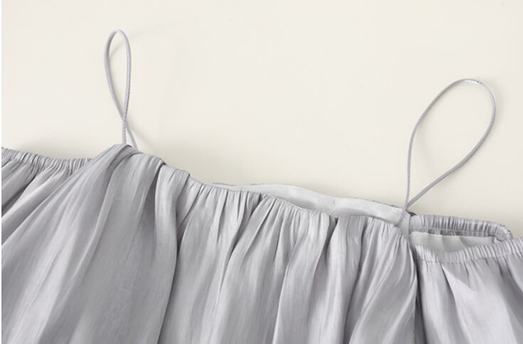 夏の肌見せにぴったりなショート丈トップスは、キャミソール&バルーン袖の絶妙バランスでデコルテを美しく演出。