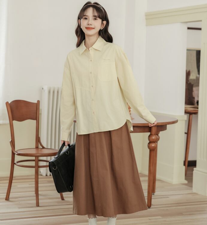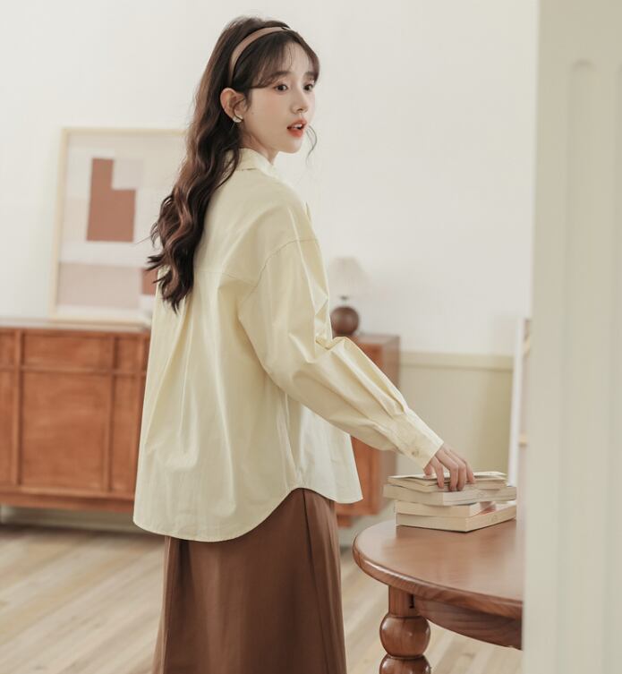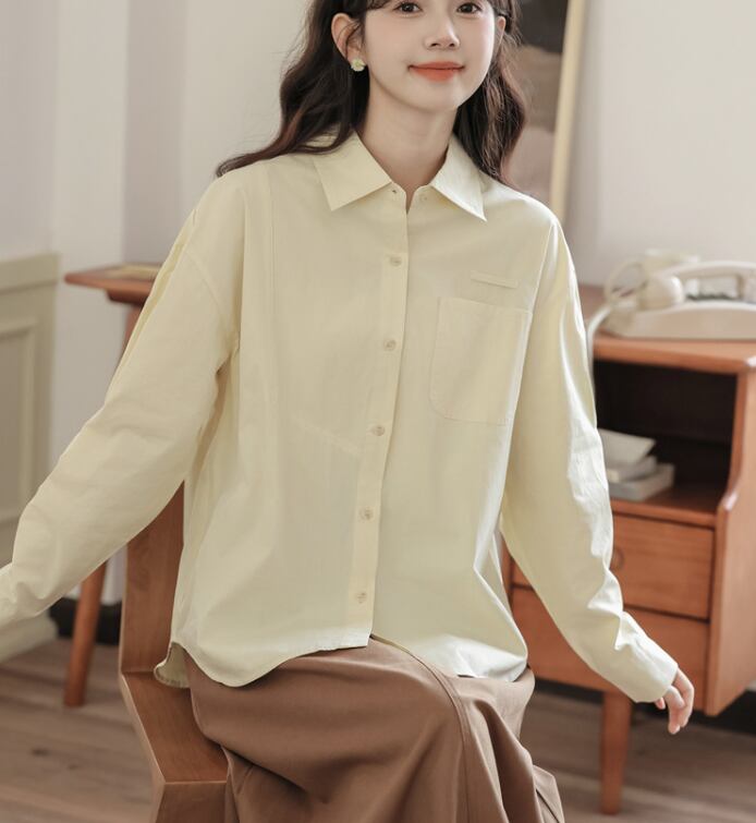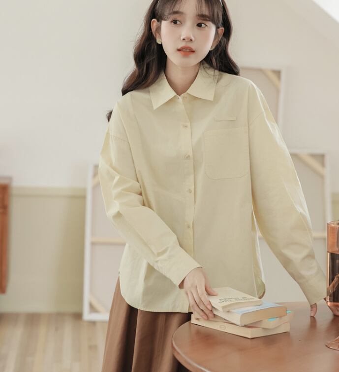 レディース トップス シャツ ブラウス 普通丈 長袖 襟付き 角襟 ワイド フェミニン 前開き ボタン 大人可愛い きれいめ シンプル カジュアル 上品 おしゃれ レトロ こなれ感 ラフ クール モード系 エレガント モダン 主役級 存在感 抜け感 都会的 学生風 ベーシック ナチュラル 無地 春 秋 デート お出かけ 女子会 休日 ショッピング カフェ 普段使い 着回し モテ 清楚 トレンド 流行 インスタ映え 定番 ゆったり フリーサイズ アプリコット ベーシックカラー 大人カラー