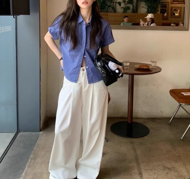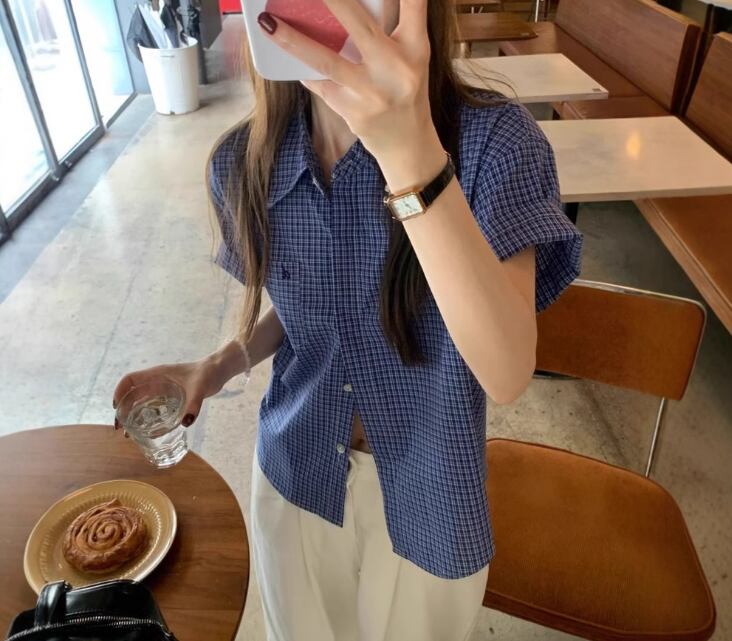 レディース トップス シャツ ブラウス 普通丈 半袖 襟付き 角襟 ワイド 前開き ボタン 薄手 きれいめ シンプル カジュアル 上品 おしゃれ レトロ アジアン こなれ感 ラフ 個性的 モダン 主役級 存在感 都会的 ベーシック ナチュラル チェック 格子柄 春 夏 ロングシーズン デート お出かけ 女子会 休日 ショッピング カフェ 普段使い 着回し モテ 清楚 トレンド 流行 インスタ映え 定番 S M L XL 2XL ゆったり サイズ展開 ブルー ベーシックカラー 大人カラー