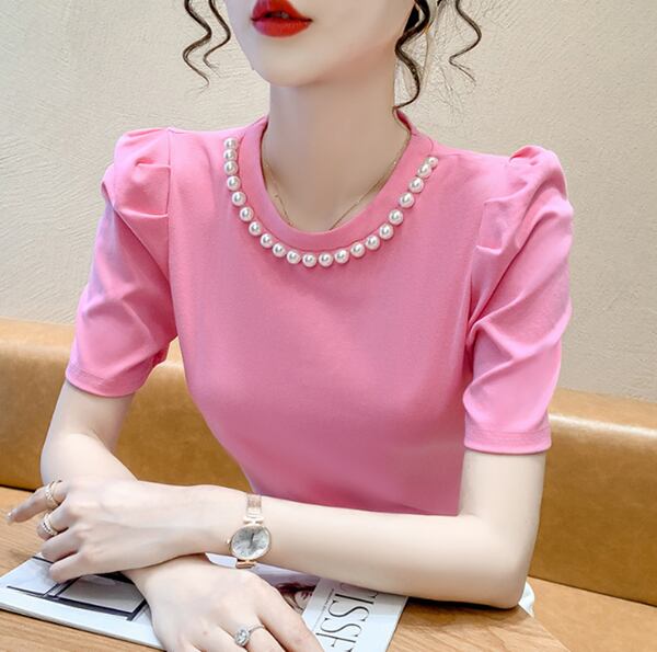 レディース トップス カットソー プルオーバー 普通丈 半袖 クルーネック 襟なし ストレート フェミニン パール 大人可愛い きれいめ シンプル 上品 おしゃれ こなれ感 ラフ モード系 エレガント モダン 主役級 存在感 ラブリー 都会的 ベーシック ナチュラル 無地 夏 デート お出かけ パーティー イベント 女子会 ショッピング カフェ モテ 清楚 トレンド 流行 インスタ映え 定番 S M L XL 2XL サイズ展開 ブラック ピンク ベーシックカラー 大人カラー カラバリ