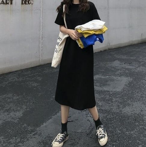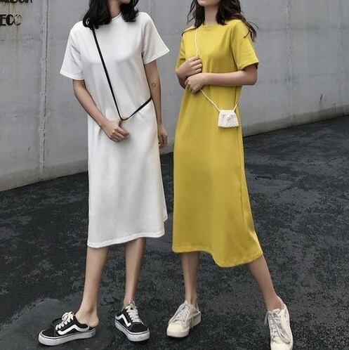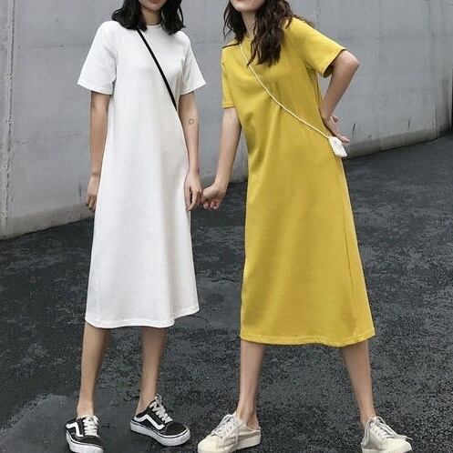 レディース ワンピース Tシャツ ミモレ ロング 半袖 Uネック ラウンドネック フレア セミフレア Aライン フェミニン ストリート かわいい 大人可愛い きれいめ シンプル カジュアル おしゃれ かっこいい こなれ感 ラフ ガーリー ルーズ クール 抜け感 キュート カレッジ風 学生風 無地 夏 休日 お揃い 双子 オルチャン 体型カバー 普段使い 着回し トレンド 流行 定番 M L XL 2XL 小さいサイズ 大きいサイズ ビッグ ゆったり ゆる 白 ホワイト 黒 ブラック 黄色 イエロー ブルー