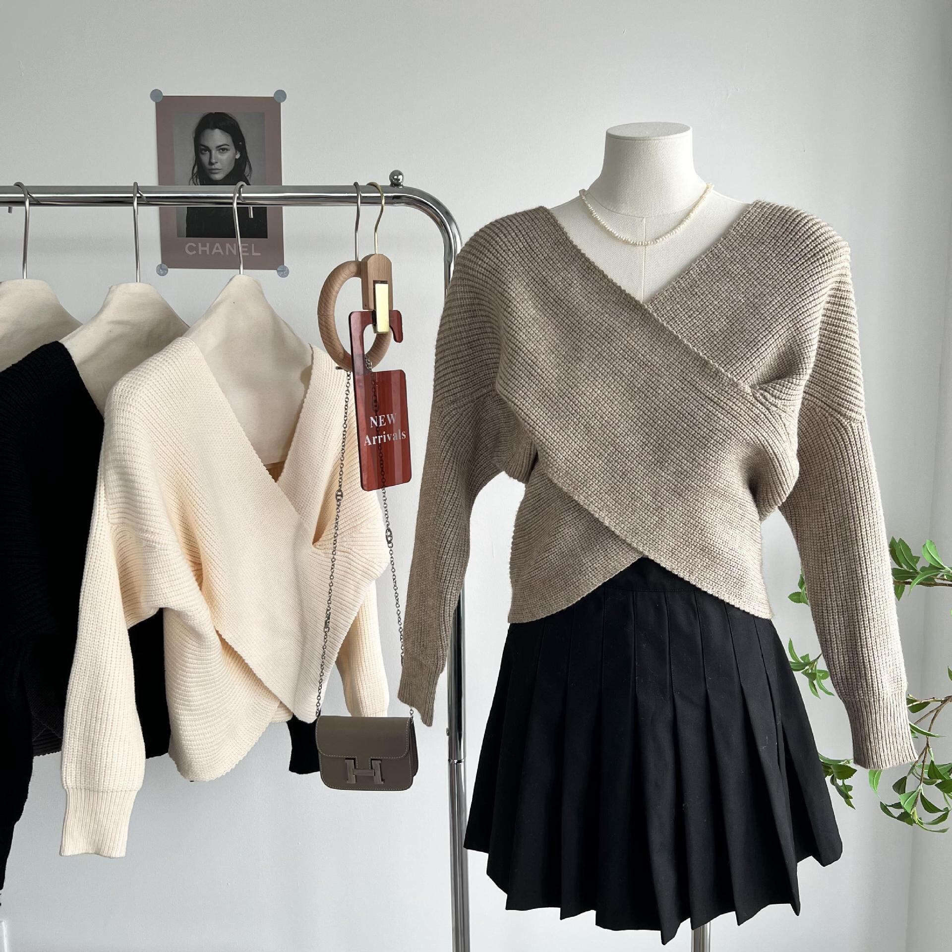 レディース トップス ニット セーター 長袖 クロスホルター かわいい 大人可愛い きれいめ シンプル カジュアル 上品 おしゃれ かっこいい レトロ こなれ感 ガーリー エレガント モダン 存在感 抜け感 ラブリー キュート 都会的 ラグジュアリー アクティブ ロマンティック ナチュラル 無地 秋 冬 デート お出かけ イベント 休日 重ね着 韓国 オルチャン 楽ちん 暖かい 防寒 普段使い 着回し レイヤード トレンド 流行 インスタ映え フリーサイズ 黒 ブラック グレー オフホワイト ベージュ