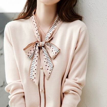 りぼんタイが揺れるたび上品さと可愛さを両立する洗練スタイル。