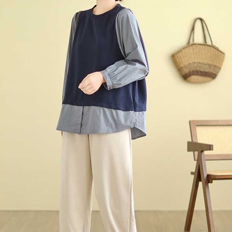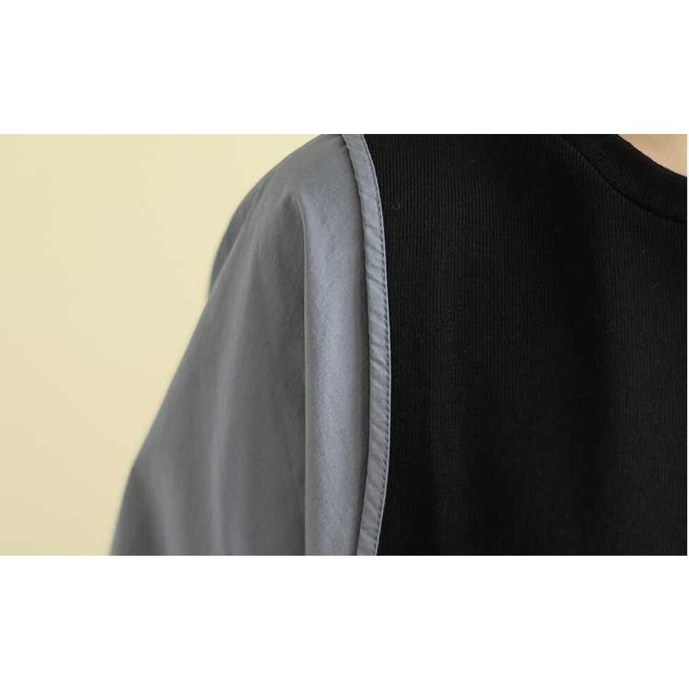 着るだけでおしゃれを高めてくれる切り替えデザイン、すっきりしたクルーネックに、体型をカバーしてくれるゆったりシルエット、コーデが最速に決まる異素材ドッキングトップス。