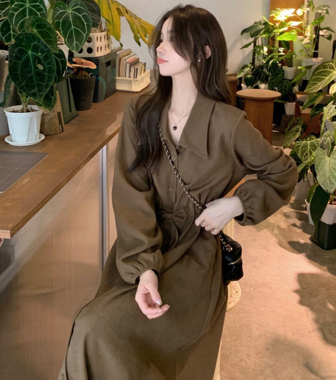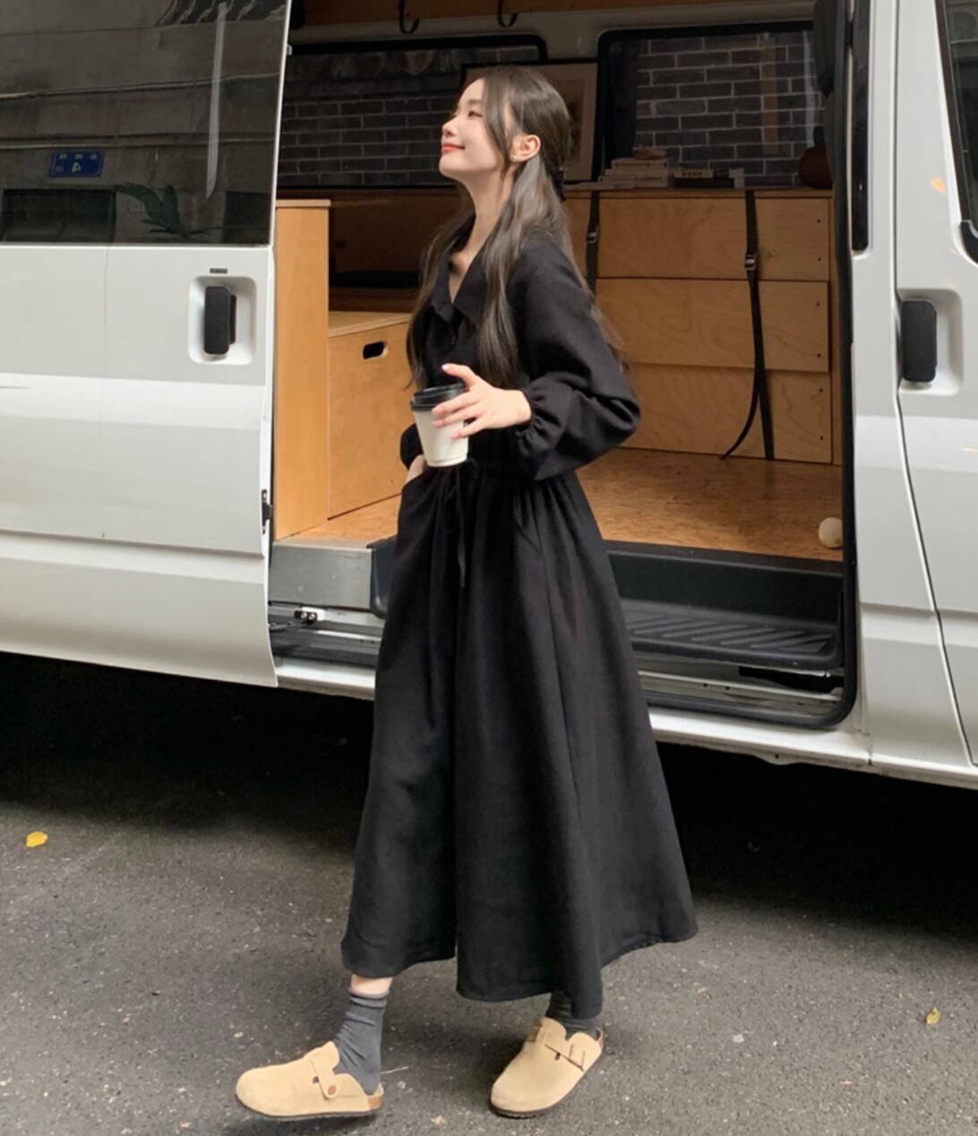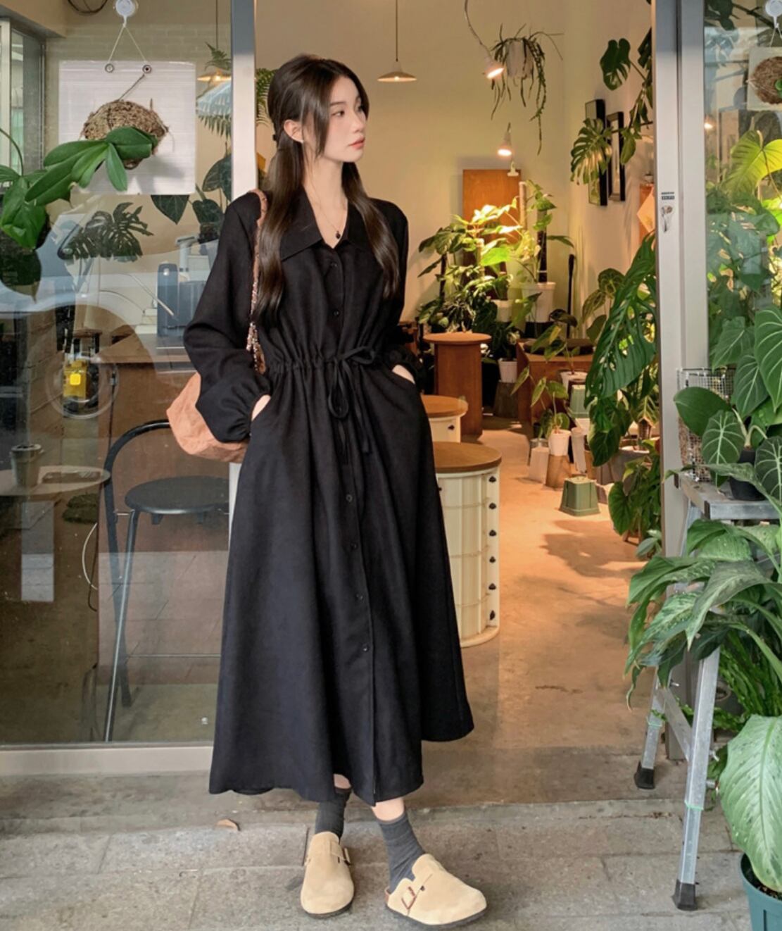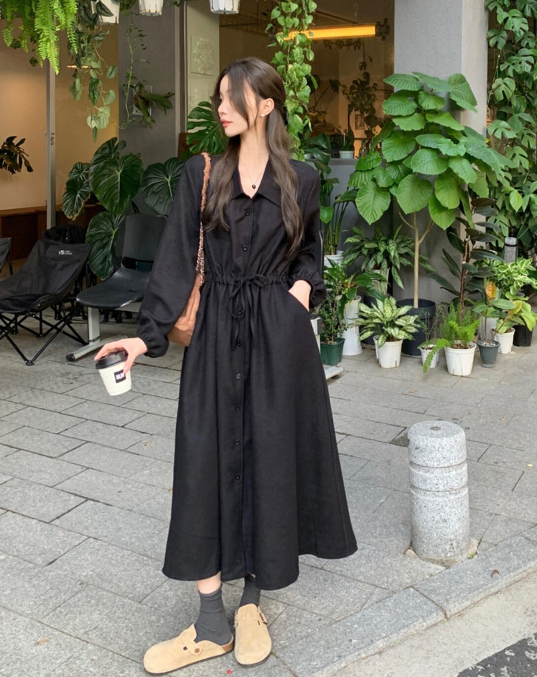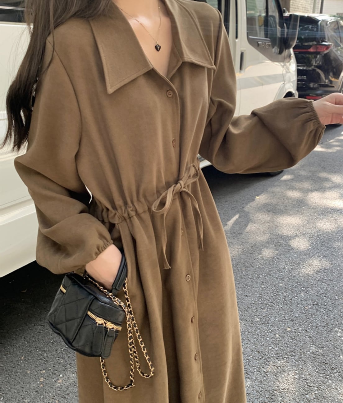 レディース スカート トップス ワンピース ドレス シャツワンピ フレア ティアード 前開き ジャンパースカート 膝上 ロング マキシ 丈長 長袖 パフスリーブ 襟付き 角襟 フレア スリム 細身 Aライン 裾ワイド フェミニン タック リボン ウエストマーク ウエストリボン ボタン かわいい きれいめ シンプル おしゃれ ガーリー エレガント ラブリー キュート ロマンティック ナチュラル 無地 春 夏 秋 冬 オールシーズン デート お出かけ コーデ 楽ちん 体型カバー 脚長 清楚 黒 ブラック 茶色