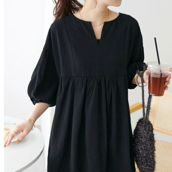 レディース トップス ブラウス プルオーバー チュニック 7分袖 キーネック セミフレア オーバーサイズ フェミニン ハイウエスト かわいい 大人可愛い きれいめ シンプル カジュアル 上品 おしゃれ かっこいい レトロ こなれ感 抜け感 ラブリー キュート ベーシック プレッピー ロマンティック ナチュラル 無地 春 夏 お出かけ 旅行 休日 重ね着 韓国 オルチャン 楽ちん 体型カバー 普段使い 着回し トレンド 定番 M L XL 大きいサイズ ビッグ ゆったり ゆる 白 ホワイト 黒 ブラック