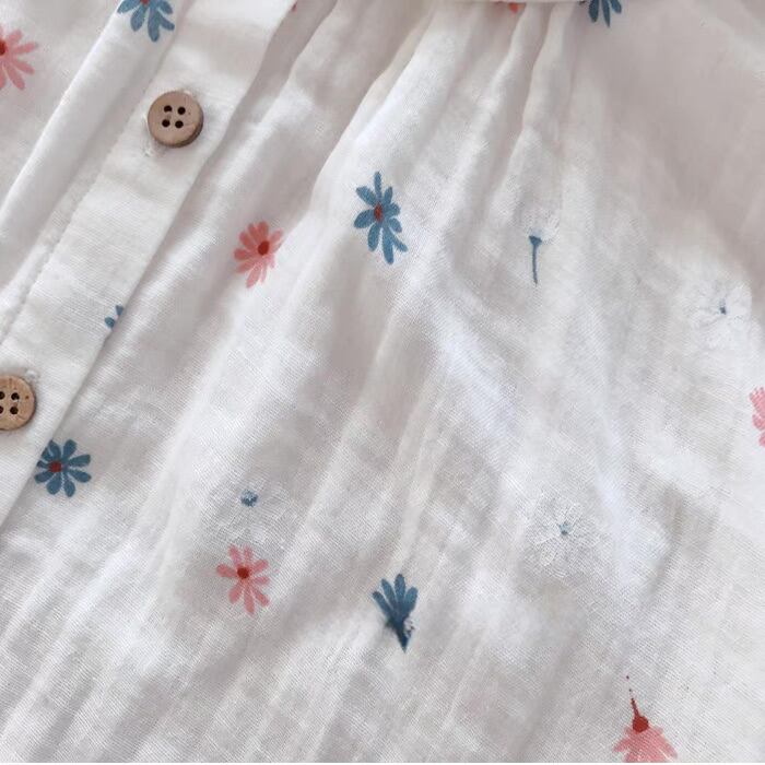 清楚さと抜け感がちょうどいい花柄Vネックシャツ。