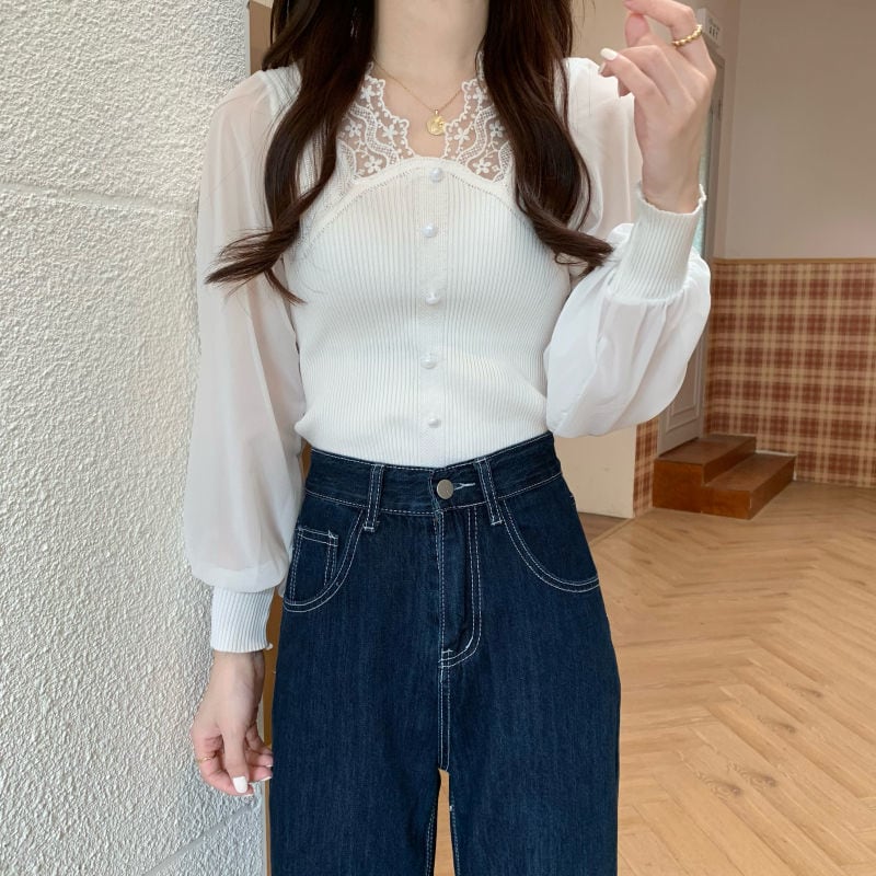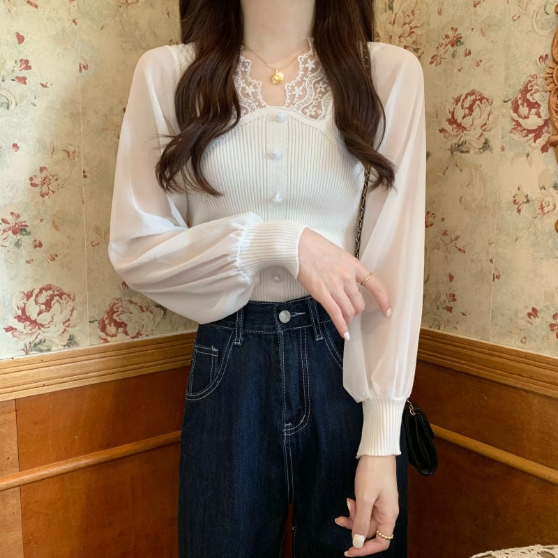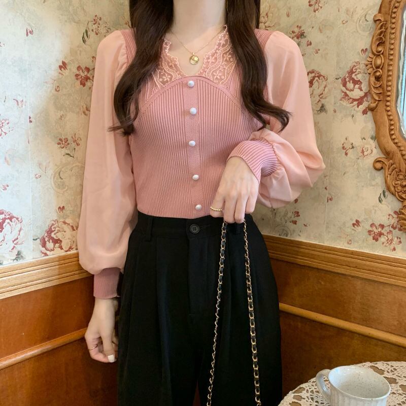 トップス ブラウス カットソー プルオーバー 長袖 ボリューム袖 パフスリーブ 萌袖 バルーン袖 Vネック タイト スリム 細身 切り替え レース 刺繍 チュール シフォン ふわふわ ふっくら リブ 透け感 シースルー 異素材ミックス かわいい 大人可愛い きれいめ シンプル カジュアル 上品 おしゃれ ガーリー エレガント 存在感 都会的 ラグジュアリー クラシカル 無地 春 夏 秋 ロングシーズン デート お出かけ 公園 女子会 休日 ショッピング お花見 カフェ 普段使い 着回し フリーサイズ