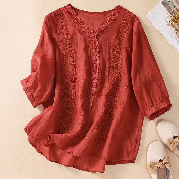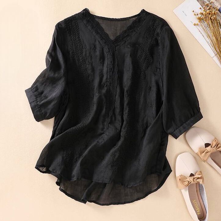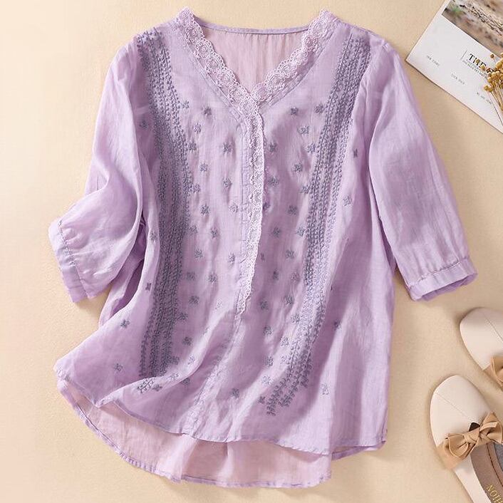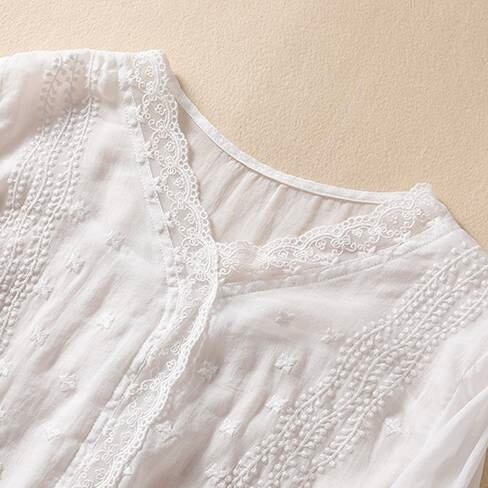 レディース シャツ ブラウス プルオーバー 5分袖 Vネック フェミニン レース 刺繍 ヴィンテージ かわいい 大人可愛い きれいめ シンプル 上品 おしゃれ レトロ アジアン エスニック エキゾチック ガーリー ラブリー キュート ロリータ プリンセス ラグジュアリー クラシカル ロマンティック ナチュラル セクシー 花柄 フラワー 春 夏 お出かけ 旅行 女子会 休日 高原 ガーデン 重ね着 楽ちん 普段使い 着回し トレンド 流行 M L XL 2XL 白 ホワイト 黒 ブラック 紫 パープル 赤