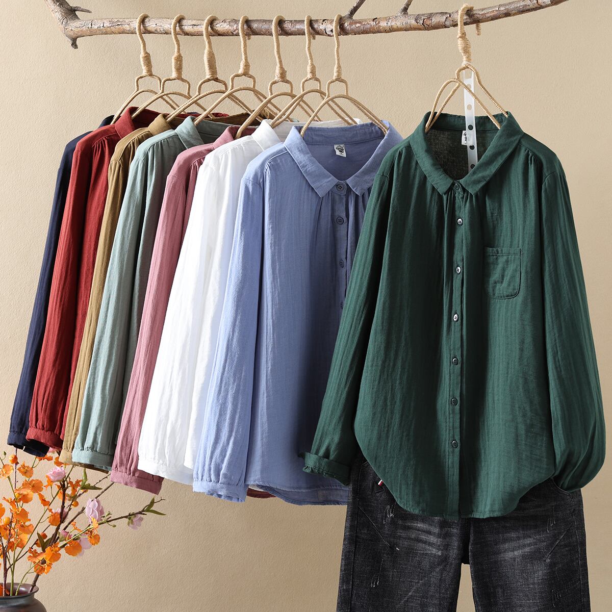 レディース トップス シャツ ブラウス 長袖 Vネック 襟付き 角襟 オーバーサイズ フェミニン ストリート 前開き ボタン 薄手 綿 コットン かわいい 大人可愛い きれいめ シンプル カジュアル おしゃれ レトロ アジアン こなれ感 ラフ ガーリー キュート クラシカル ベーシック ナチュラル 無地 春 秋 学生 重ね着 韓国 オルチャン 楽ちん 普段使い 着回し レイヤード 白 ホワイト ピンク 水色 ブルー レッド ネイビー 深緑 緑 グリーン モスグリーン ベーシックカラー 春カラー 秋カラー