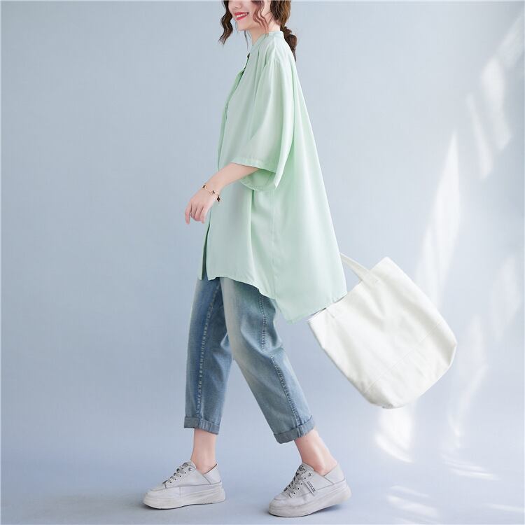 レディース トップス シャツ ブラウス 羽織 前開き ロング 7分袖 スタンドカラー オーバーサイズ フェミニン ストリート かわいい 大人可愛い きれいめ シンプル カジュアル 上品 おしゃれ レトロ こなれ感 ラフ メンズライク マニッシュ ボーイッシュ 無地 春 秋 お出かけ 休日 重ね着 韓国 オルチャン 楽ちん 体型カバー 普段使い 着回し レイヤード 定番 大きいサイズ ビッグ ゆったり ゆる フリーサイズ 白 ホワイト 黒 ブラック オフホワイト 緑 グリーン ベーシックカラー カラバリ