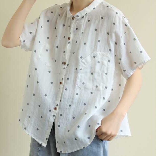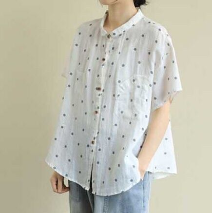 レディース トップス シャツ ブラウス 半袖 5分袖 フェミニン ストリート 前開き ボタン 薄手 リネン 綿 異素材ミックス コットン かわいい 大人可愛い シンプル カジュアル おしゃれ ガーリー 抜け感 ヴィンテージ ラブリー キュート ベーシック ロマンティック ナチュラル ドット柄 水玉 春 夏 休日 高原 ガーデン ショッピング コンサート ライブ トレンド 流行 インスタ映え S M L XL 2XL 3XL 大きいサイズ ビッグ ゆったり ゆる 白 ホワイト 黄色 イエロー レッド 赤