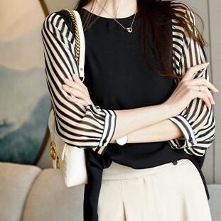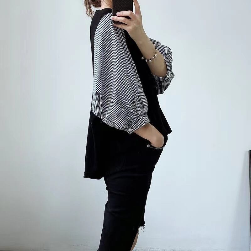 レディース トップス カットソー プルオーバー 7分袖 ボリューム袖 バルーン袖 フェミニン 切り替えデザイン バイカラー 配色 ドッキング かわいい 大人可愛い シンプル おしゃれ ガーリー エレガント 抜け感 ラブリー キュート ロマンティック ナチュラル 無地 チェック 格子柄 ギンガムチェック ストライプ 春 夏 イベント 旅行 休日 重ね着 韓国 オルチャン 楽ちん 普段使い 着回し トレンド 流行 定番 M L XL 白 ホワイト 黒 ブラック グレー モノトーン ベーシックカラー 大人カラー