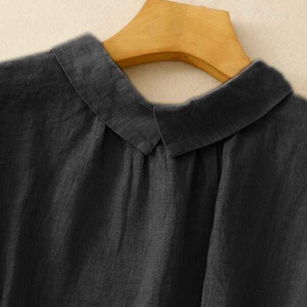 首元を美しく見せるVネック×角襟で品よく涼やかに。